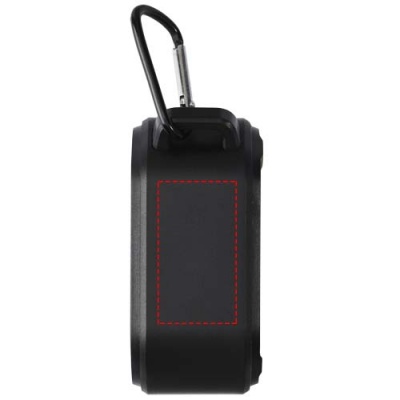 Logo trade promotional product photo of: Solo 3W IPX5 RCS recycled plastic solar Bluetooth® speaker with carabiner
