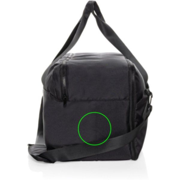 Your standard business Swiss Peak weekend bag with 15"6 inch laptop compartment for all your short business trips. Made with Aware™ RPET 300D/150D. Main compartment has additional pockets and an zipper pocket on the inside. Rigid zippers