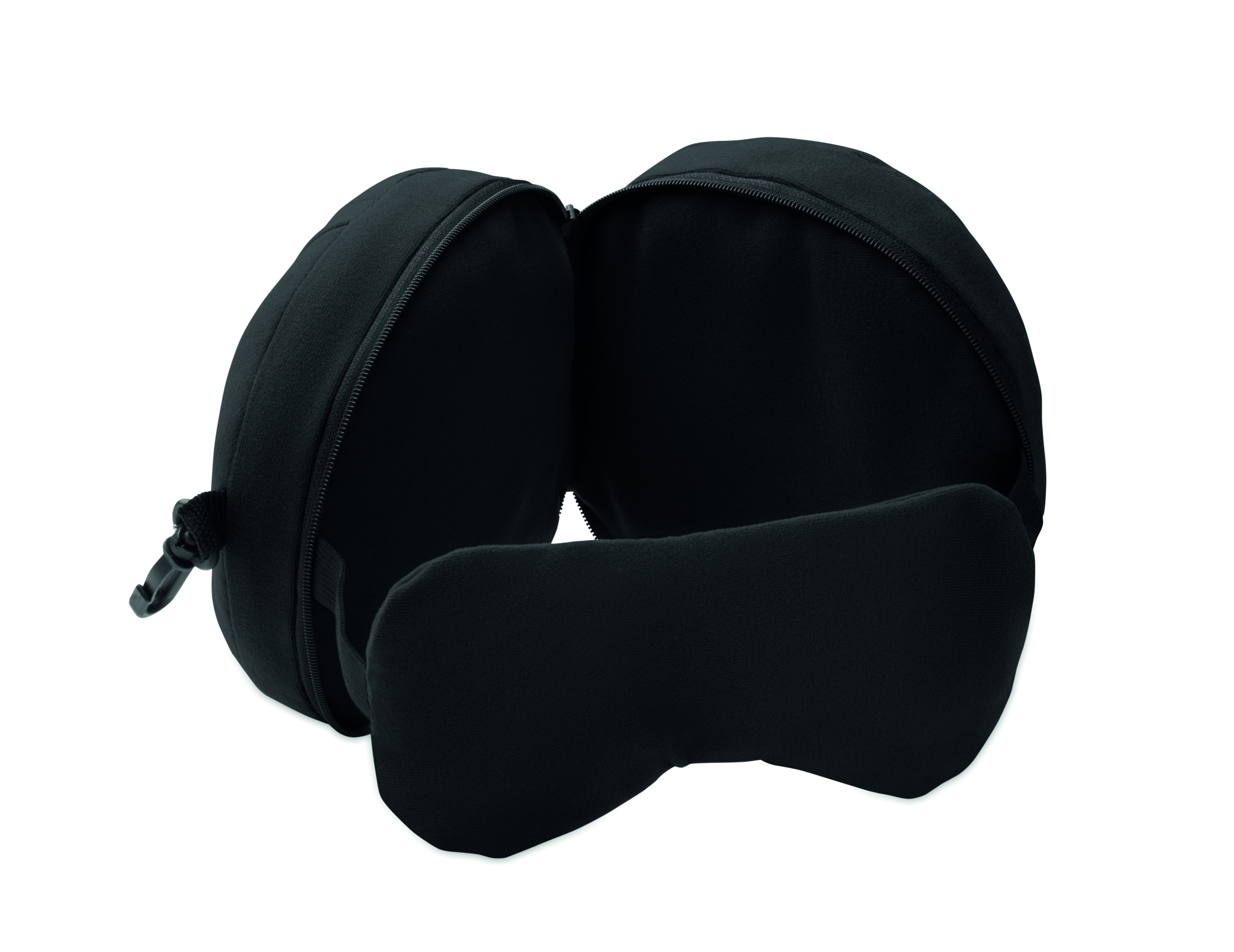 2 in 1 travel pillow with attached eye mask.
