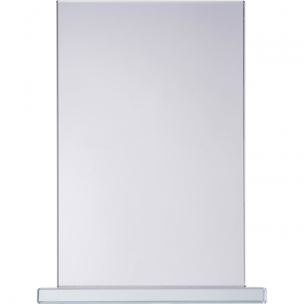 Glass trophy with base. The trophy is packaged in a gift box with satin lining and magnetic closure. Your logo is applied to the trophy using laser engraving.