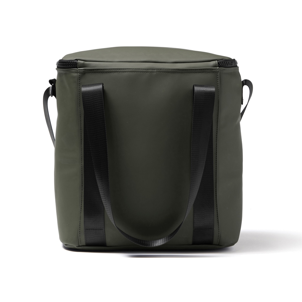 Minimalist cooler bag, made of water-repellent PU nubuck. Long handles and adjustable shoulder strap for optimal comfort. The cooler bag is insulated with extra thick foam. The lining of the bag is made of so-called PEVA which is easy to keep clean and fresh. A cooler bag perfect for both the beach and a wilderness adventure.