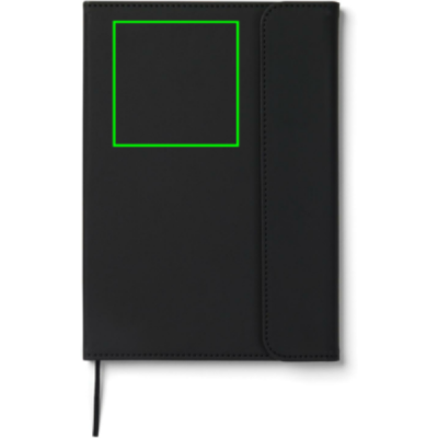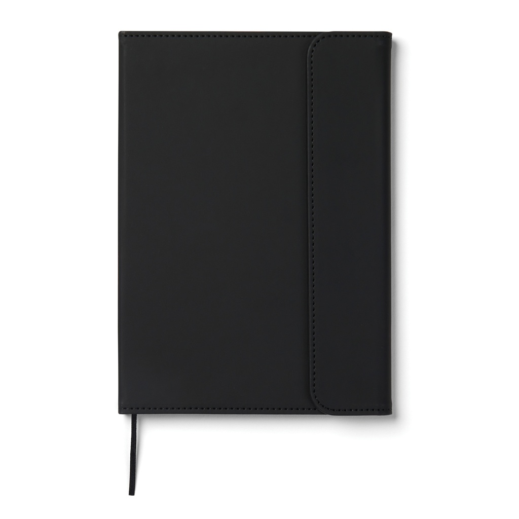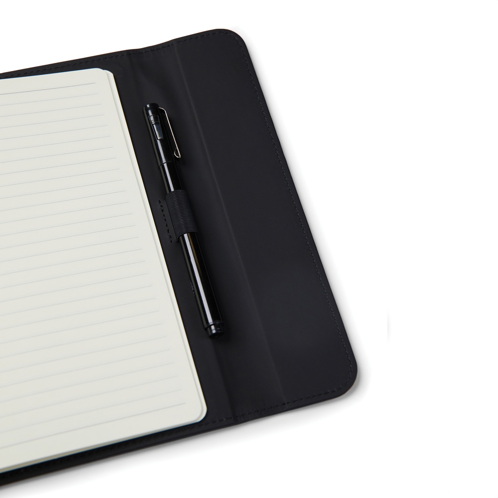 Sleek A5 notebook in a clean touch. Its cover, crafted from 30% recycled matte PU, features a magnetic closure and an integrated pen holder. Within, 80 pages/160 sheets of 70 gsm lined recycled paper, suitable for all your note-taking needs. The paper insert can be replaced, allowing for prolonged use over time. Certified by GRS (Global Recycled Standard), GRS certification guarantees that the entire supply chain of the recycled materials is certified. The total recycled content is based on the overall product weight. This product contains 54% GRS-certified paper and 5 % GRS-recycled PU.