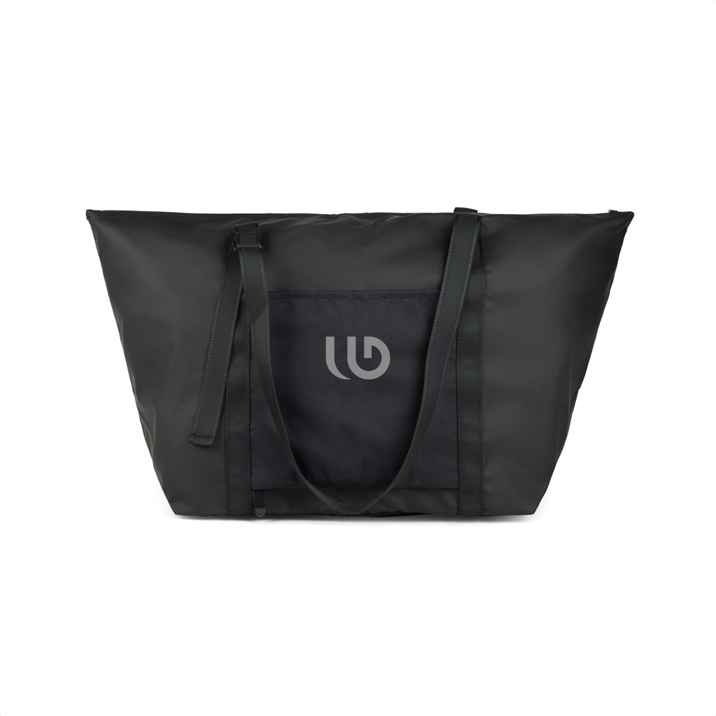 A perfect travel companion, this weekend bag is crafted from super lightweight GRS certified polyester with a sleek PU coating. Simply fold it and secure with the clever strap and buckle for storing compactly when not in use. Featuring a clever outer pocket that transforms into a secure trolley sleeve that allows you to slip it over a wheeled suitcase or trolley. Featuring adjustable straps to carry by hand or over your shoulder. Smaller inner pocket for your essentials. These versatile bags are not only easy to carry but are also designed to fold and store compactly in your luggage, providing convenient extra storage without weighing you down. Certified by GRS (Global Recycled Standard), this certification guarantees that the entire supply chain of the recycled materials is certified. The total recycled content is based on the overall product weight. This product contains 52% GRS certified recycled polyester.