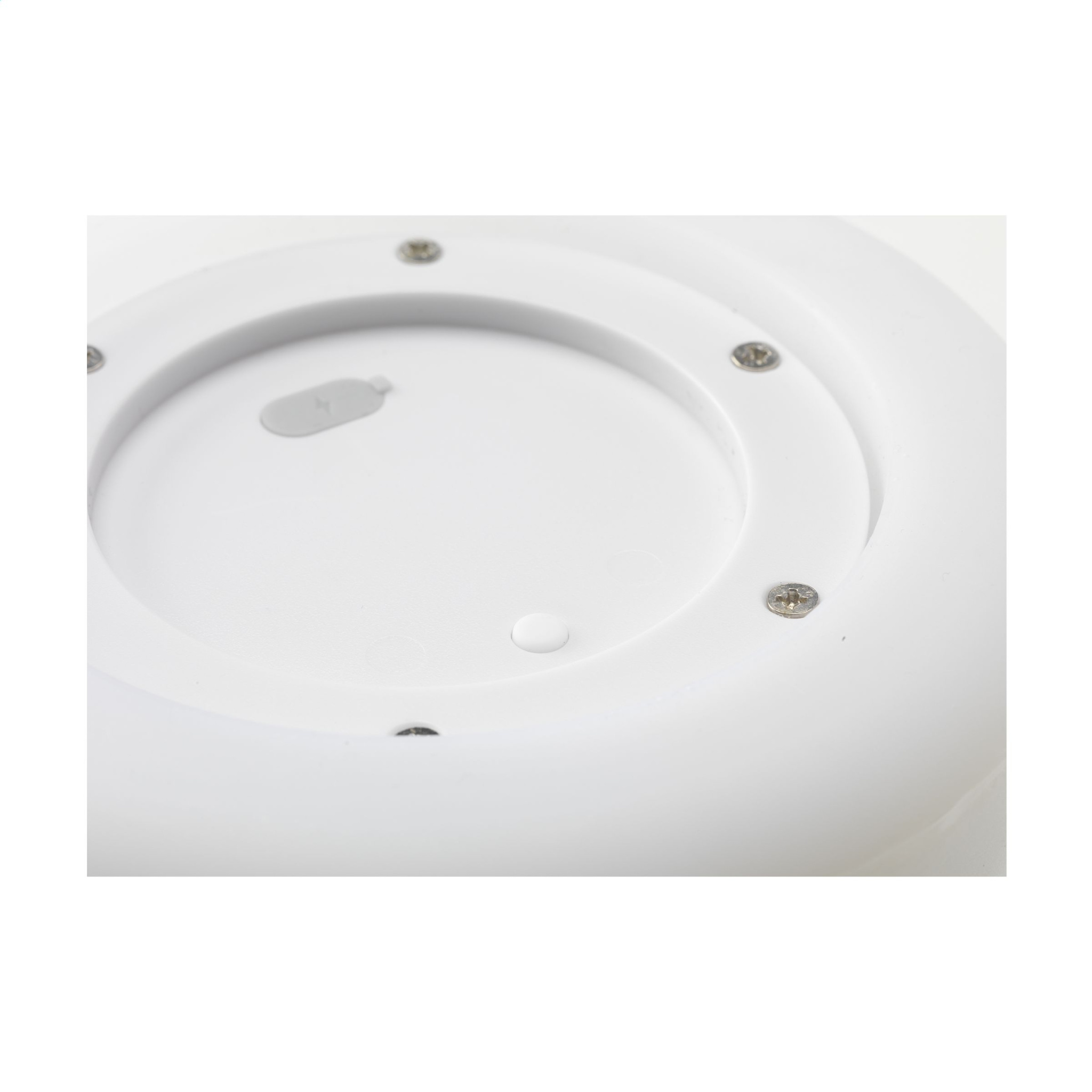 Rechargeable solar lamp from the Wooosh brand. This lamp is equipped with an integrated solar panel on the top of the lamp and a sturdy, imitation leather handle. The milky white plastic shade dampens the LED lamp slightly, emitting a soft, warm light. With its simple design this modern, cordless lamp is easy to move and so can be used in any environment, both indoors and outdoors. This lamp is charged by sunlight. If the panel has not received enough energy, the lamp can be charged with the included USB-C charging cable. It can also be controlled from a distance with the included remote control. A beautiful eye-catching lamp for atmospheric moments indoors and outdoors. Includes a rechargeable battery (800 mAh) and a user manual. Each item is supplied in an individual brown cardboard box.