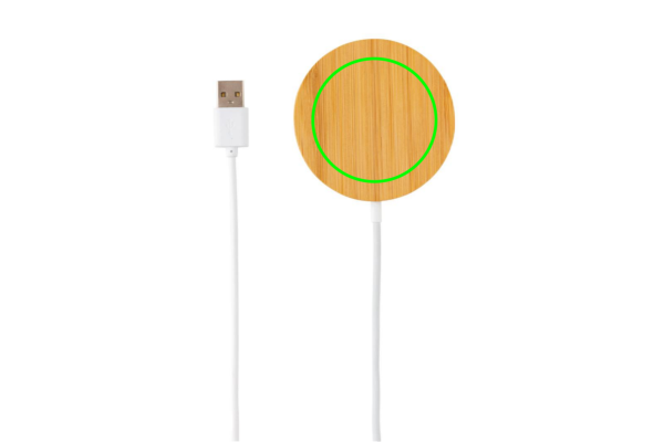 Logo trade firmakingid foto: 10 W bambusest magnetiline juhtmevaba laadija