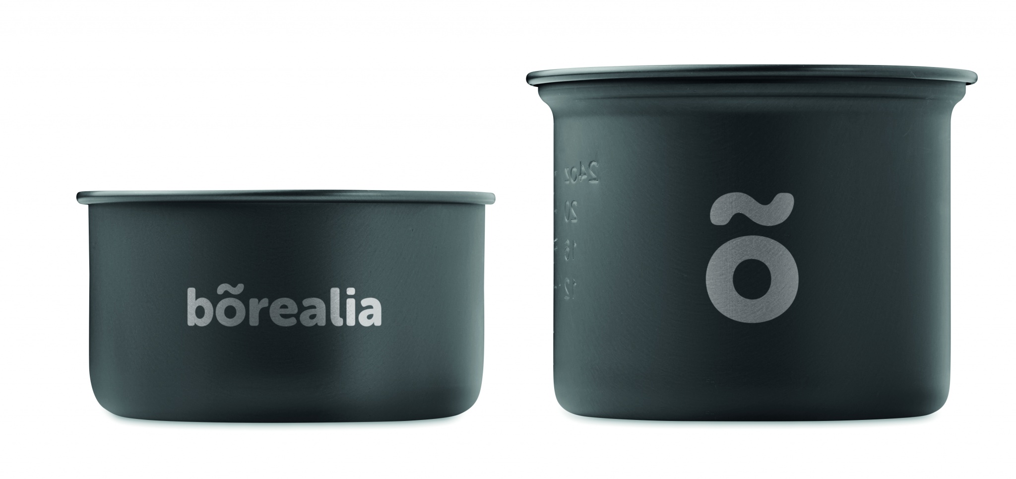 Komplektis 2 alumiiniumist matkapotti roostevabast terasest söögiriistadega RPET kotis. Mahutavus: 550ml ja 800ml.
