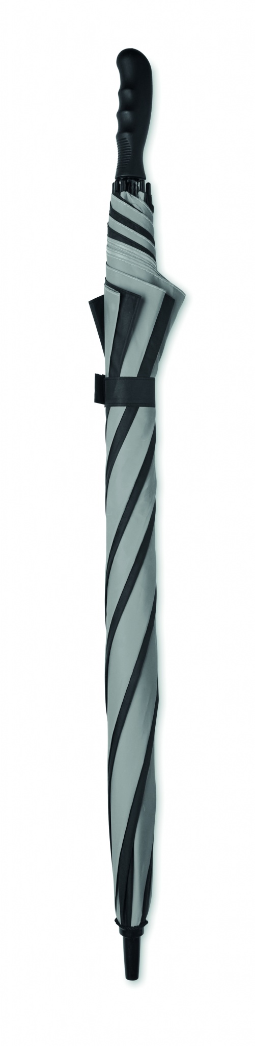 30-tolline käsitsi avatav tuulekindel vihmavari 190T pongee (4 paneeli) ja helkurmaterjalist (4 paneeli) klaaskiust raami, ribide ja varrega. Sirge kummiviimistlusega ABS-käepide. Käsitsi sulgemine.