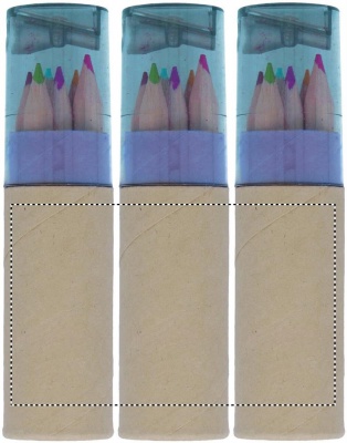 6-osaline värvipliiats tuubis. Pliiatsiteritaja läbipaistev kaas.
