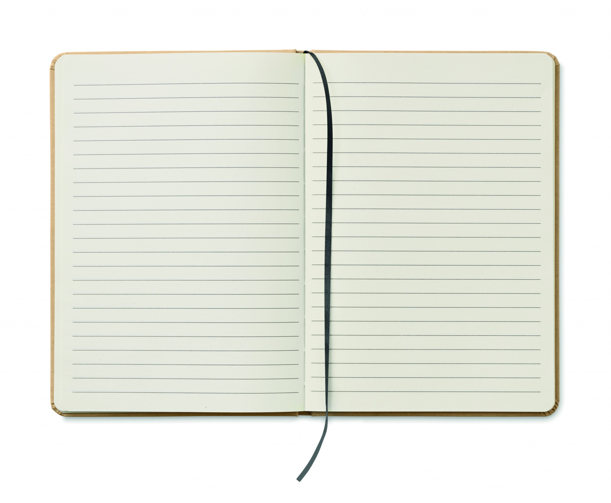 A5 märkmik kõva taaskasutatud pappkaanega. Casebound. 160 joonelist lehte (80 lehte). Elastne sulgemisrihm, lindiga järjehoidja.