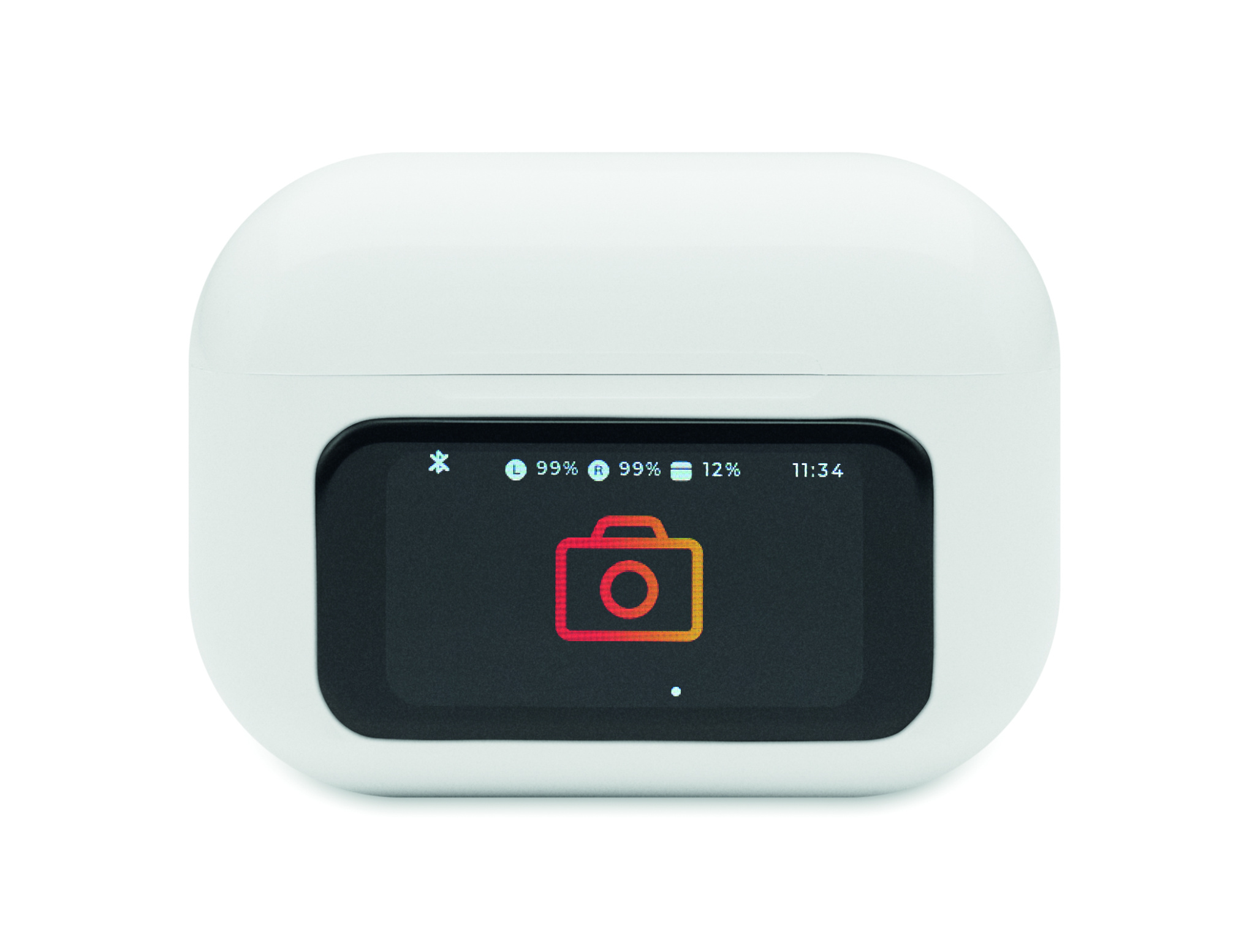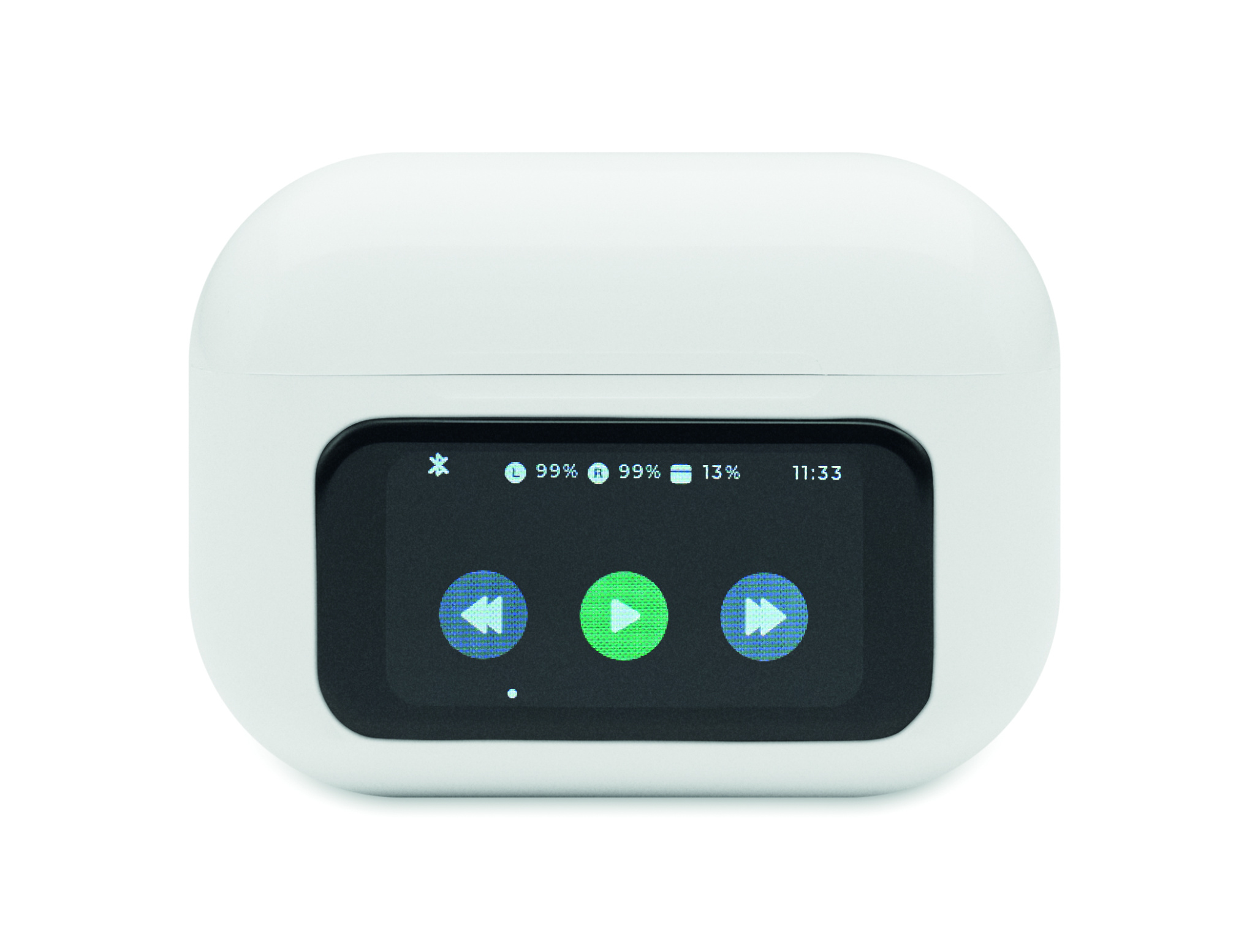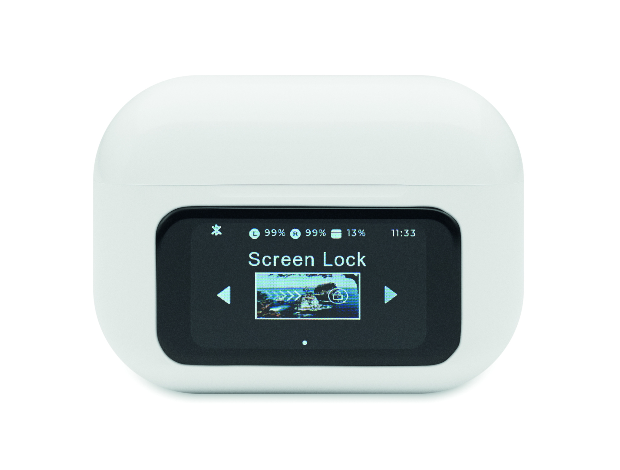 ABS True Wireless Stereo (TWS) 5.0 juhtmevabad stereokõrvaklapid (30 mAh) ANC/ENC ja mikrofoniga ning 230 mAh laadimisalusega. Puutetundliku ekraaniga juhtnupud ja ekraan.