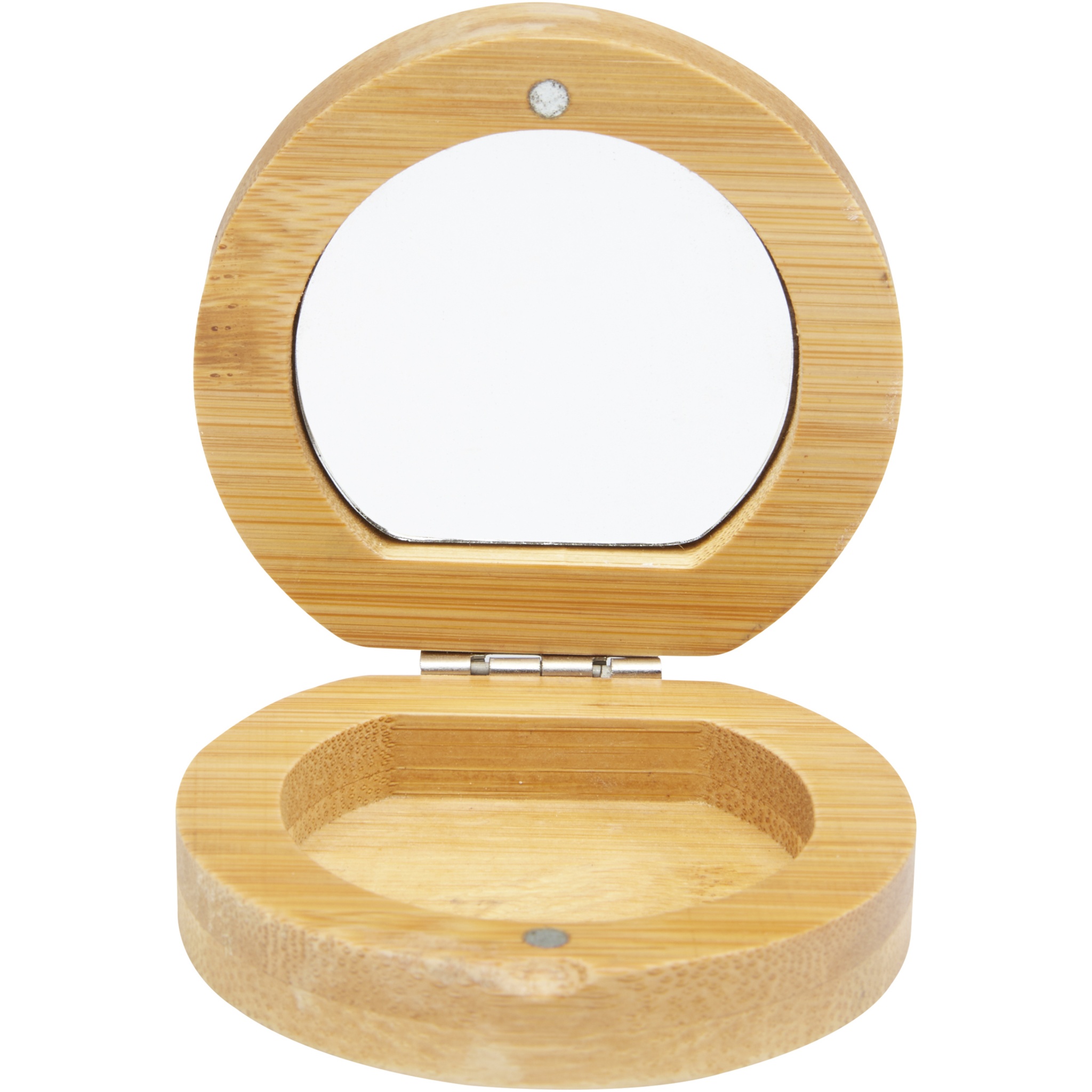 Kompaktne bambusest taskupeegel reisimiseks või igapäevaseks nahahoolduseks või meigiks kasutamiseks. Peegli allosas on väike sahtel väikeste tarvikute jaoks. Kasutatav bambus on hangitud ja toodetud säästvaid standardeid järgides.