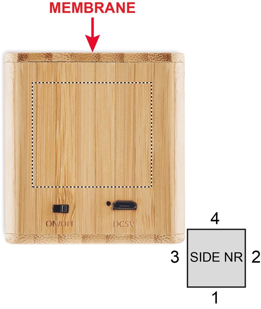 5.0 juhtmevaba kõlar bambusest korpusega ja LED-tule indikaatoriga. Kaasas 1 taaslaetav liitiumaku 500 mAh. Väljundandmed: 3W, 3 Ohm ja 5V. Mänguaeg ca. 4 tundi (70% mahust). Bambus on looduslik toode, ühe eseme värvis ja suuruses võib esineda väikesi erinevusi, mis võivad mõjutada lõppviimistlust.