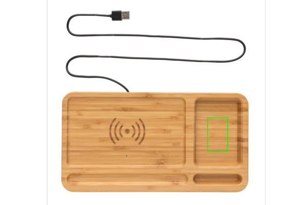 Logo trade ärikingi pilt: Bambusest lauaorganisaator 5W juhtmevaba laadija