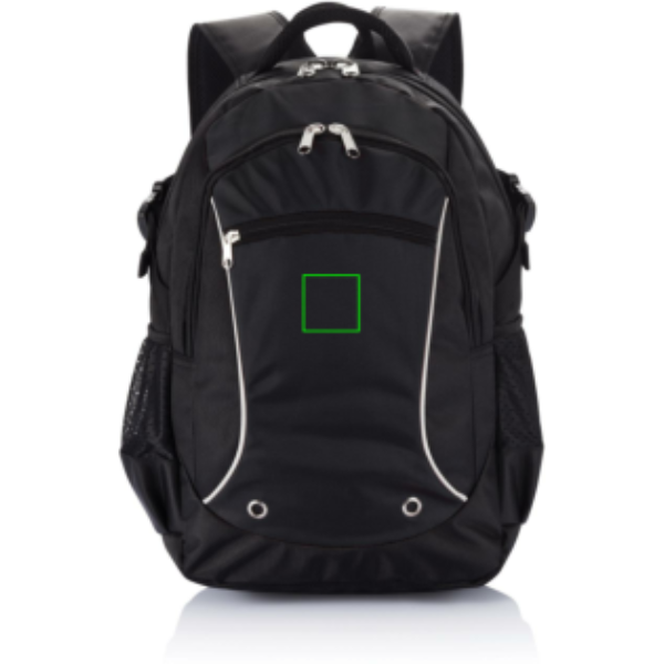 1680D ja žakaarvärvi seljakott. Tõmblukuga esitasku organiseerijaga. Tõmblukuga põhisahtel 15,6” polsterdatud sülearvutitaskuga. Peegeldav torustik. Kaks võrktaskut küljes. PVC vaba.