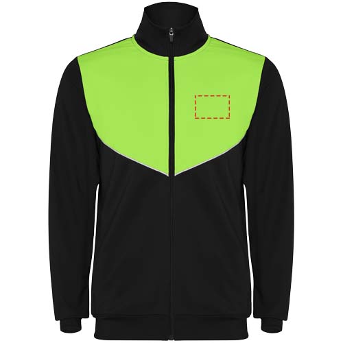 Kergest ja elastsest kangast dressid. Kontrastset värvi ja õmblemisäärtega jakk rinnal. Kõrge krae kontrastsete õmblustega. Kesk ees tõmblukk. Küljetaskud. 2x2 soonik käised ja vöökoht. Elastse vöökoha ja pingutusnööriga püksid. Kontrastne õmblusdetailidega küljeosa. Lukuga alläär.