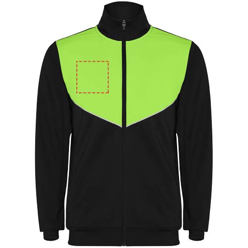 Kergest ja elastsest kangast dressid. Kontrastset värvi ja õmblemisäärtega jakk rinnal. Kõrge krae kontrastsete õmblustega. Ees keskmine tõmblukk. Küljetaskud. 2x2 soonik käised ja vöökoht. Elastse vöökoha ja pingutusnööriga püksid. Kontrastne õmblusdetailidega küljeosa. Tõmblukuga alläär.