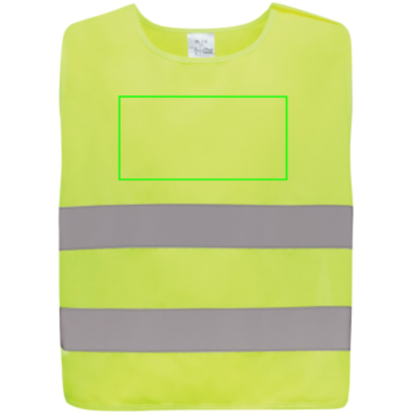 S-suuruses hästi nähtav vest, mis on mõeldud lastele vanuses 7-12 aastat, sobib neile, kelle pikkus on vahemikus 90-155 cm. See vest pakub kaunistuseks rohkelt pinda nii esi- kui ka tagaküljel. See on varustatud konksu ja aasa sulguritega õlgadel ja alaosas, pakkudes täiendavat turvalisust ja hõlbustades pingutusteta vesti selga panemist. Vastasolevad elastsed ribad tagavad venitavuse, võimaldades mugavat kandmist isegi suuremahuliste mantlite peal. See vest on läbinud testimise ja vastab EN 17353:2020 tüübile AB3. Lisaks järgib see isikukaitsevahendite juhiseid, mis on sätestatud määruses (EL) 2016/425 II kategooria isikukaitsevahendite kohta. Valmistatud GRS-sertifikaadiga taaskasutatud PET-st. Taaskasutatud kogusisaldus: 58% eseme kogukaalust. GRS-sertifikaat tagab taaskasutatud materjalide täielikult sertifitseeritud tarneahela.