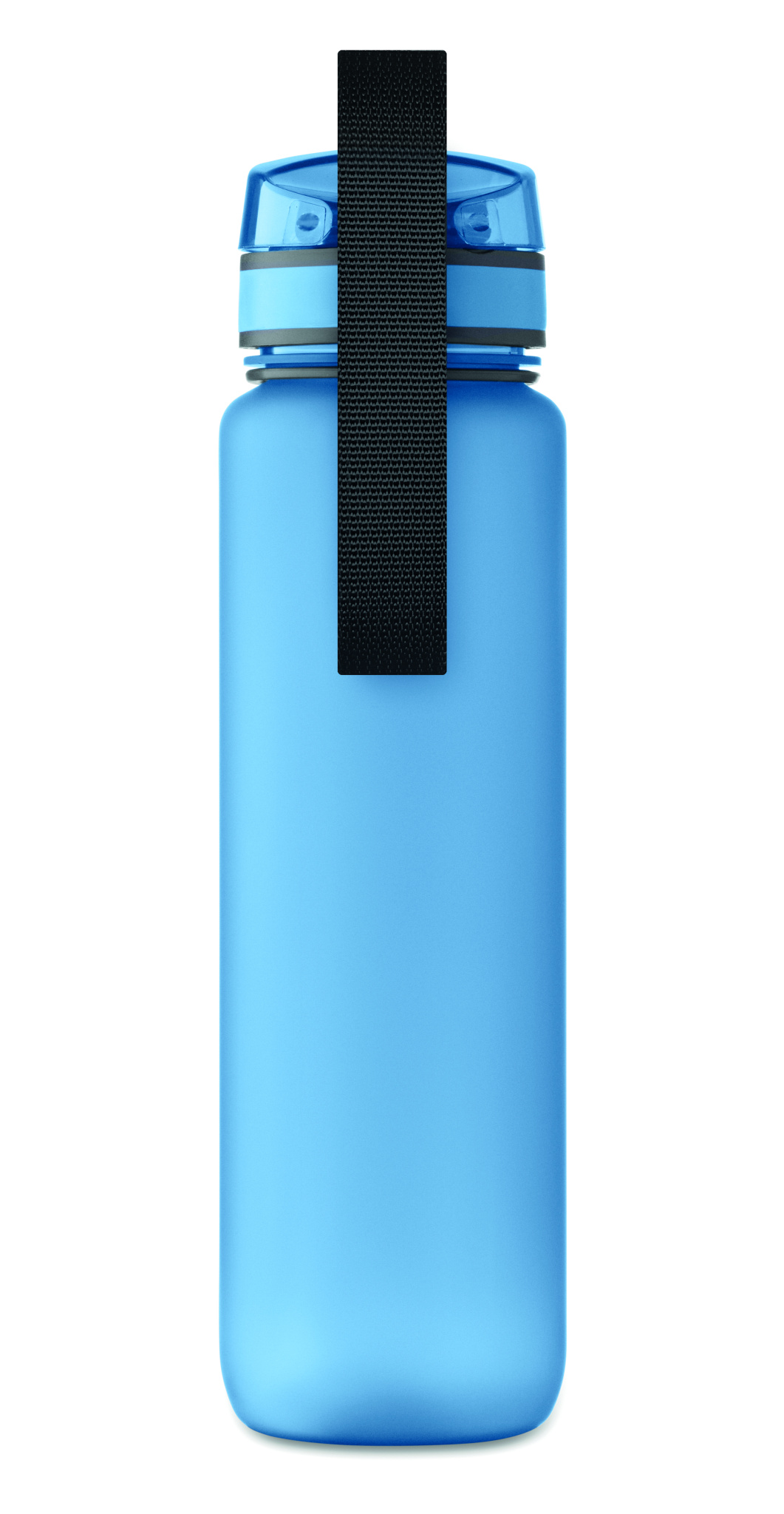 RPET-materjalist spordi veepudel, motiveerivad ajamärgid, ühe käega avatav klapiga kaas, turvalukk ja kanderihm. Lekkevaba. Maht: 1 l.
