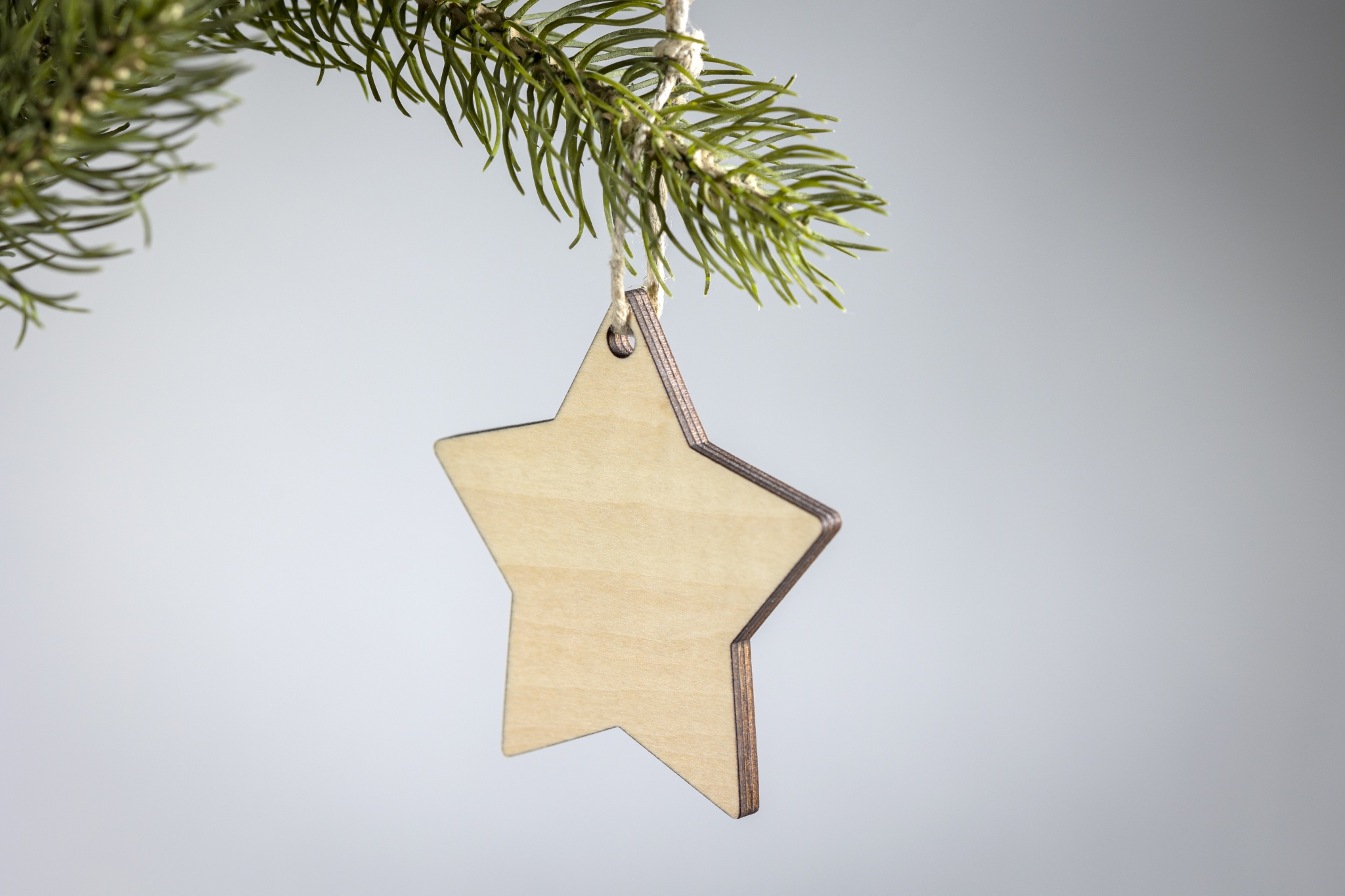 Vineerist jõuluehe koos džuudist köiega tähekujuliseks sublimeerimiseks. Valge jäljend pole võimalik.