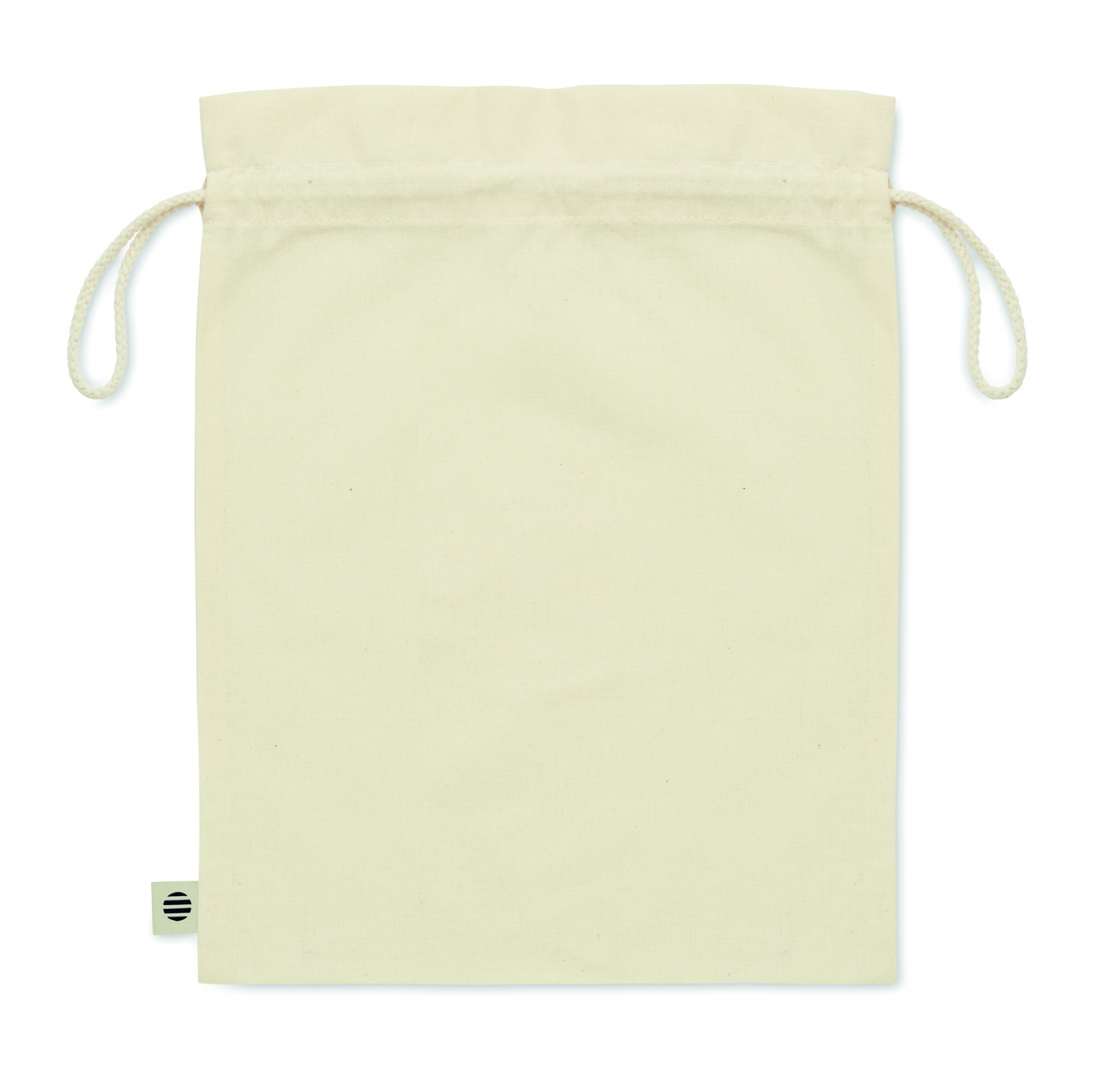 Orgaanilisest puuvillast keskmise suurusega kingituseks tõmmatud nöörikott. Suurus ca. 25 x 32 cm. 105 gr/m².