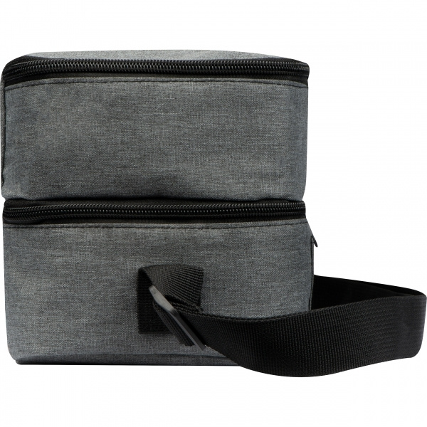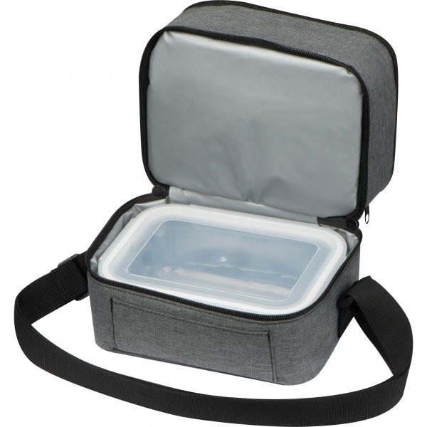 Ideaalne kaaslane mitte ainult lõunapausiks. Selle kaheosalise polüestrist jahutuskoti alumises sahtlis on täpselt sobiv klaasist lõunakarp (1000 ml). Tänu koti isolatsioonile saab toitu kauem soojas hoida ja mitte ainult jahutada. Trükime teie logo ülaosale.