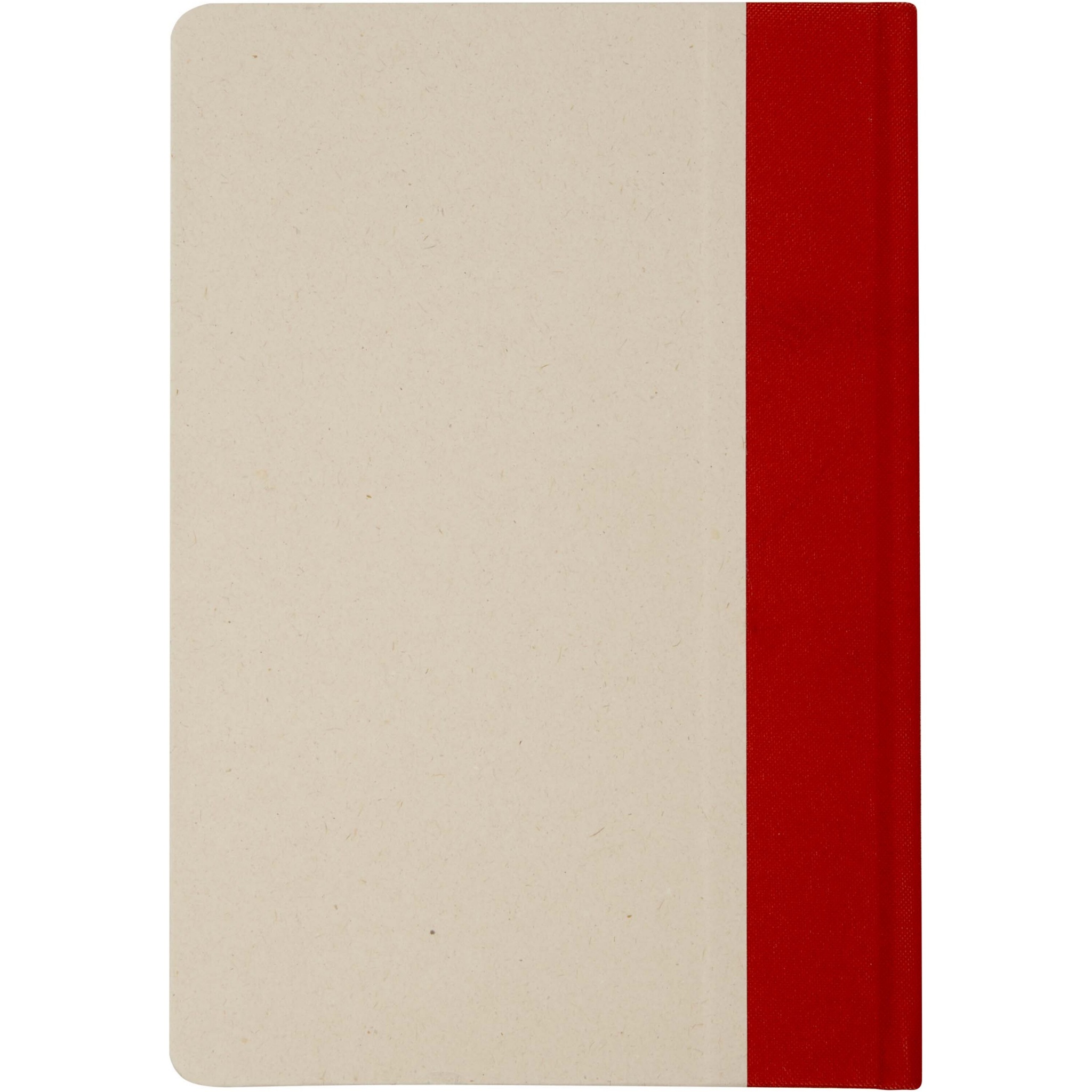 Liliana A5 kõvakaaneline ümarate nurkade ja 80 joonelise paberilehega 90 g/m² märkmik. Kate on valmistatud RPET-st ja suhkrurooplastist.