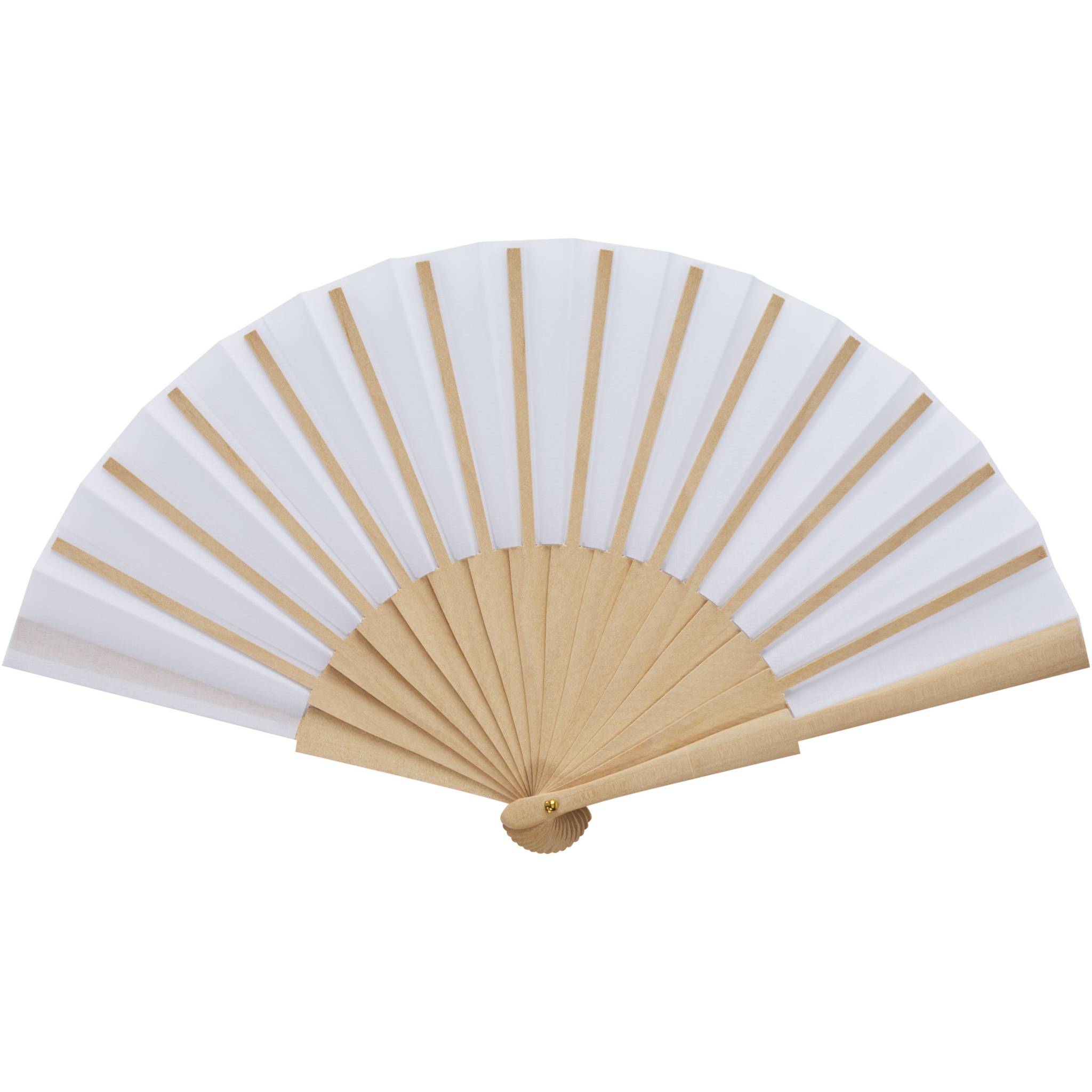 Puidust ja polüestrist valmistatud käsiventilaator, saadaval laias värvivalikus.