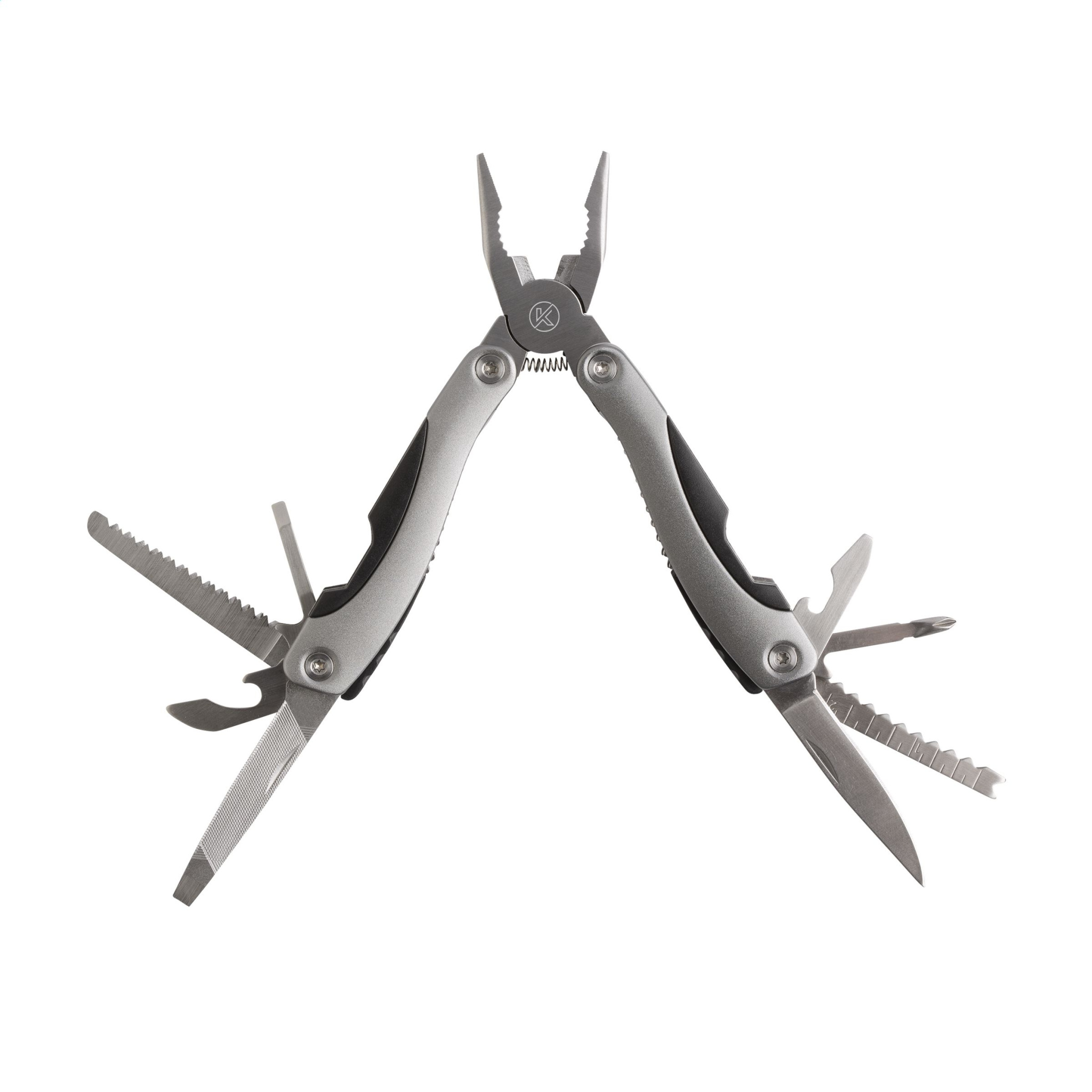 Funktsionaalne ja täielik kinkekomplekt: 9-osaline roostevabast terasest multitööriist, millel on 12 funktsiooni (tangid, traadieemaldaja, saag, 2 kruvikeeraja, konserviavaja, korgitõstja, viil, nuga, ristkruvikeeraja, kalakaabits, konksu eemaldamise tööriist) ja alumiiniumist käepide ja metalliline välimus. Alumiiniumist taskulamp (Ø 2,7 x 9 cm) 9 ereda valge energiasäästliku LED-valgusti ja eemaldatava aasaga. patareid sh. Iga komplekt karbis. Pange tähele, et nugade või multitööriistade avalikus kohas omamise ja/või kandmise kohta võivad kehtida kohalikud eeskirjad. Esemed tarnitakse komplektina, iga komplekt eraldi karbis.
