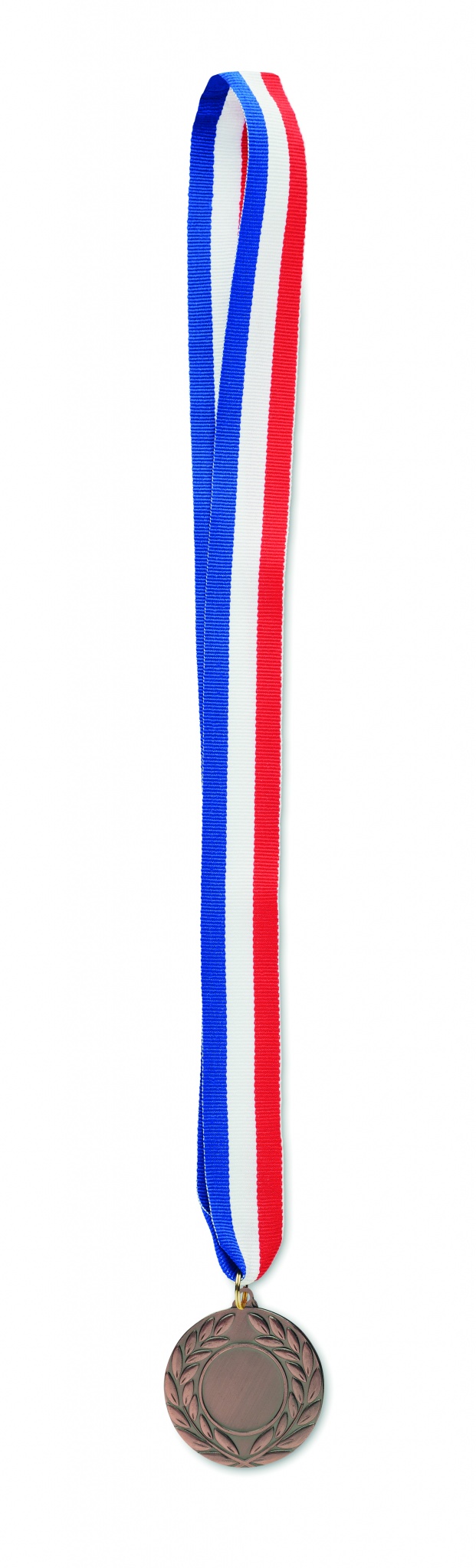 Medal rauast, polüesterrihmaga sinist, valget ja punast värvi. 5 cm läbimõõt