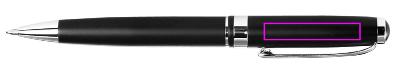 Kvaliteetne metallpliiats, mattmust, läikivate hõbedaste aplikatsioonide ja elegantse korpusega. Graveerime teie logo klipi alla.