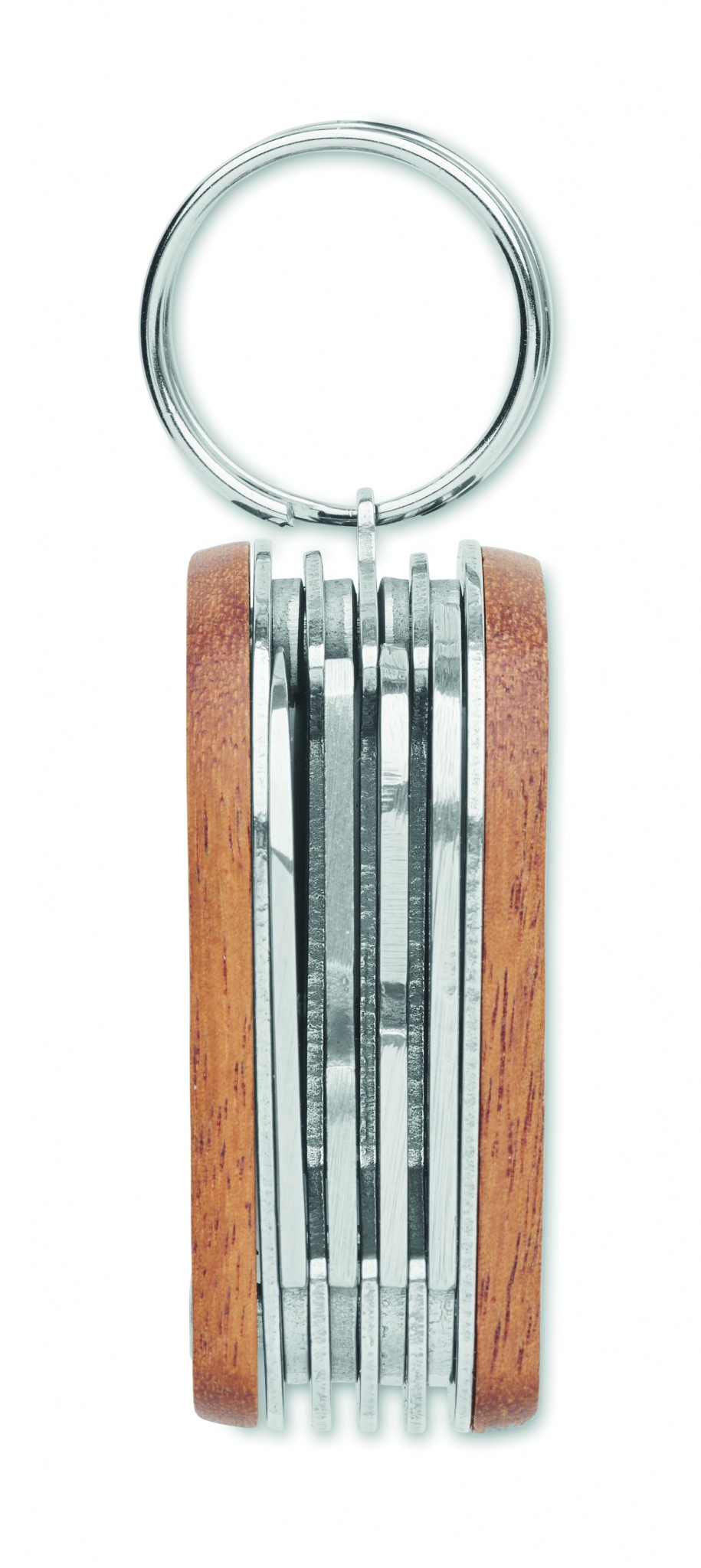 Roostevabast terasest mitme tööriistaga taskunuga akaatsiapuidust käepidemega. 7 funktsiooni: pudeliavaja, nuga, konserviavaja, viil, kruvikeeraja otsikud, võtmehoidja ja 1 LED valgusti. Kaasas 3 nööpelementi.