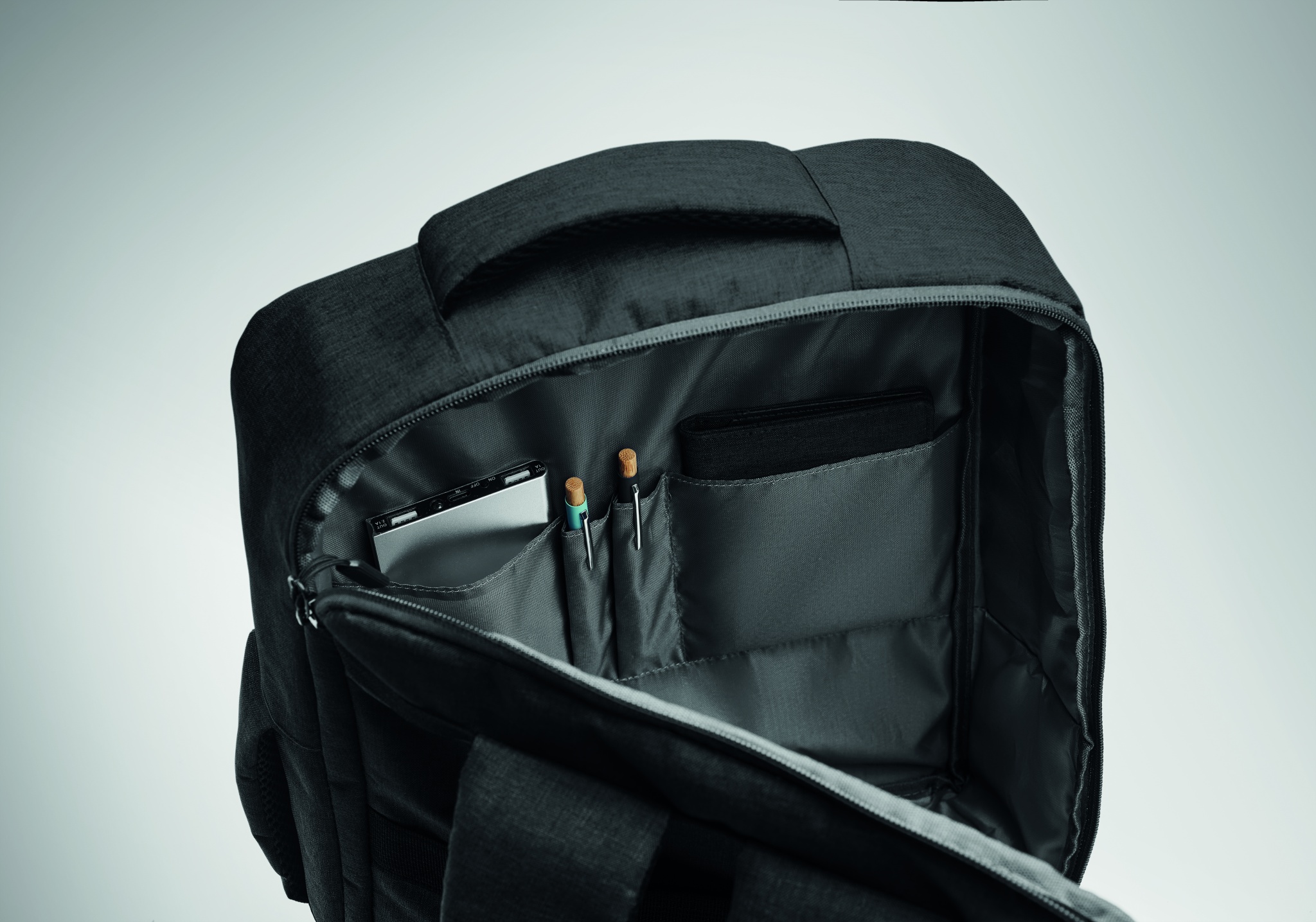 Logo trade reklaamkingi pilt: 15-tollise sülearvuti seljakott, valmistatud 300D RPET-st ja 210D RPET-voodriga