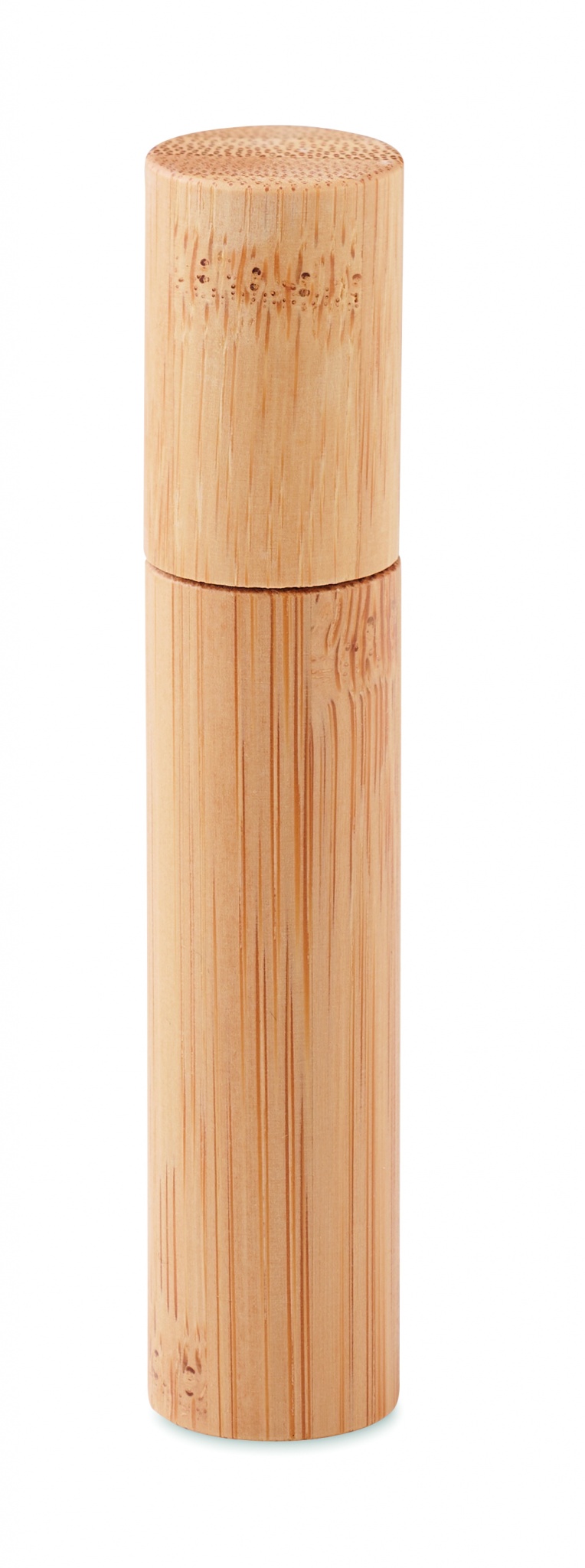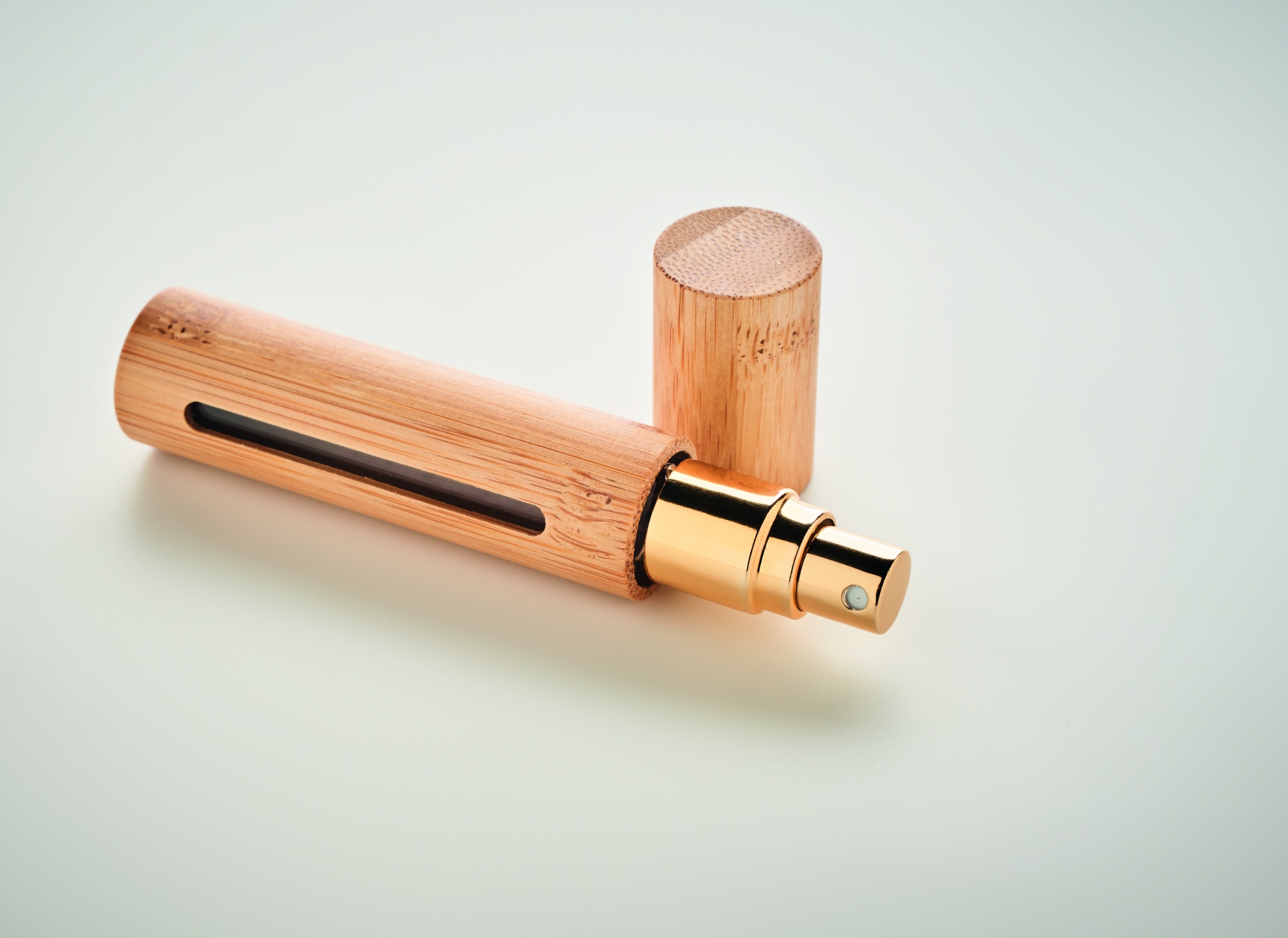 Mini parfüümi taastäidetav pihustipudel bambusest ümbrisega. Mahutavus: 10 ml. Bambus on looduslik toode, ühe eseme värvis ja suuruses võib esineda väikesi erinevusi, mis võivad mõjutada lõppviimistlust.