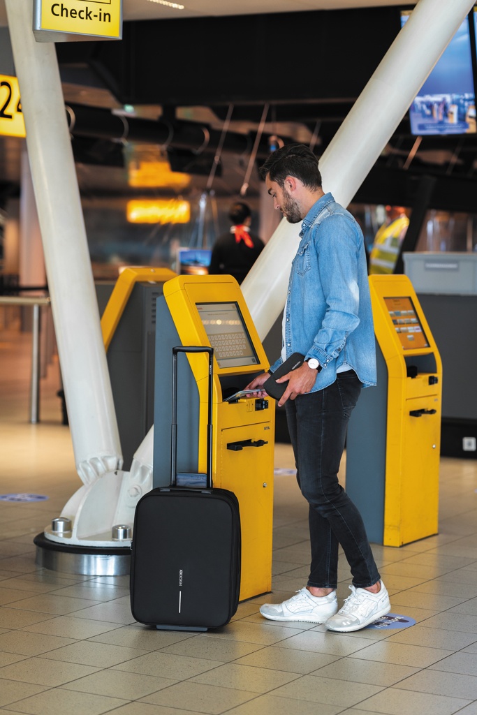 XD Designi passihoidja hoiab teie väärisesemed käepärast ja kaitstuna. RFID-kaitstud tasku ja pardakaardid magnetsulguriga esitaskus on käeulatuses. Selle passiümbrise eripära on see, et saate seda hoidikut kasutada ka telefonialusena, et reisil olles oma lemmikvideoid vaadata. Kolm-ühes sisemine hoiuruum võimaldab seda kasutada ka raha- ja telefonikotina. Sobib kuni 5,5” mobiiltelefonile. Valmistatud taaskasutatud materjalidest. Registreeritud disain®