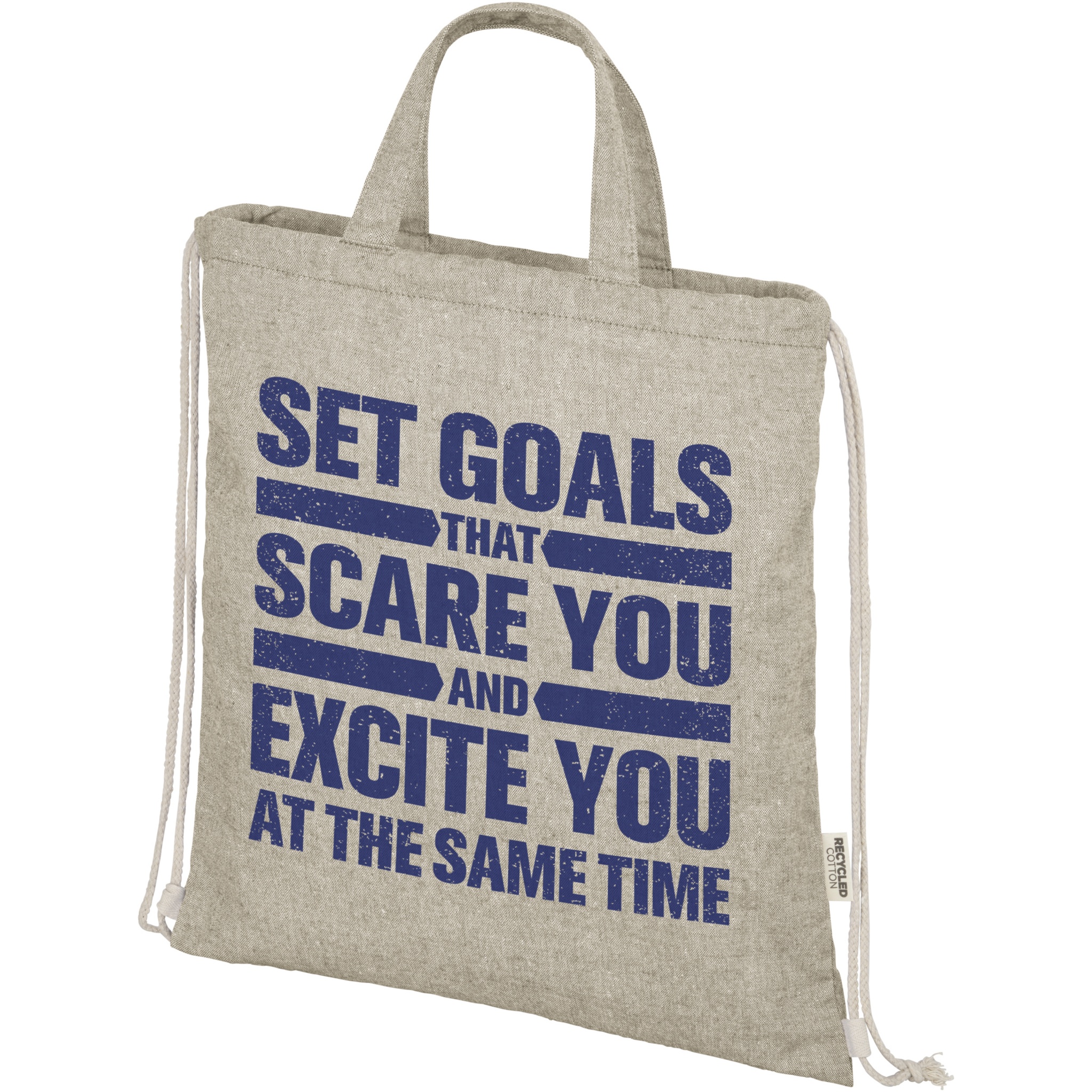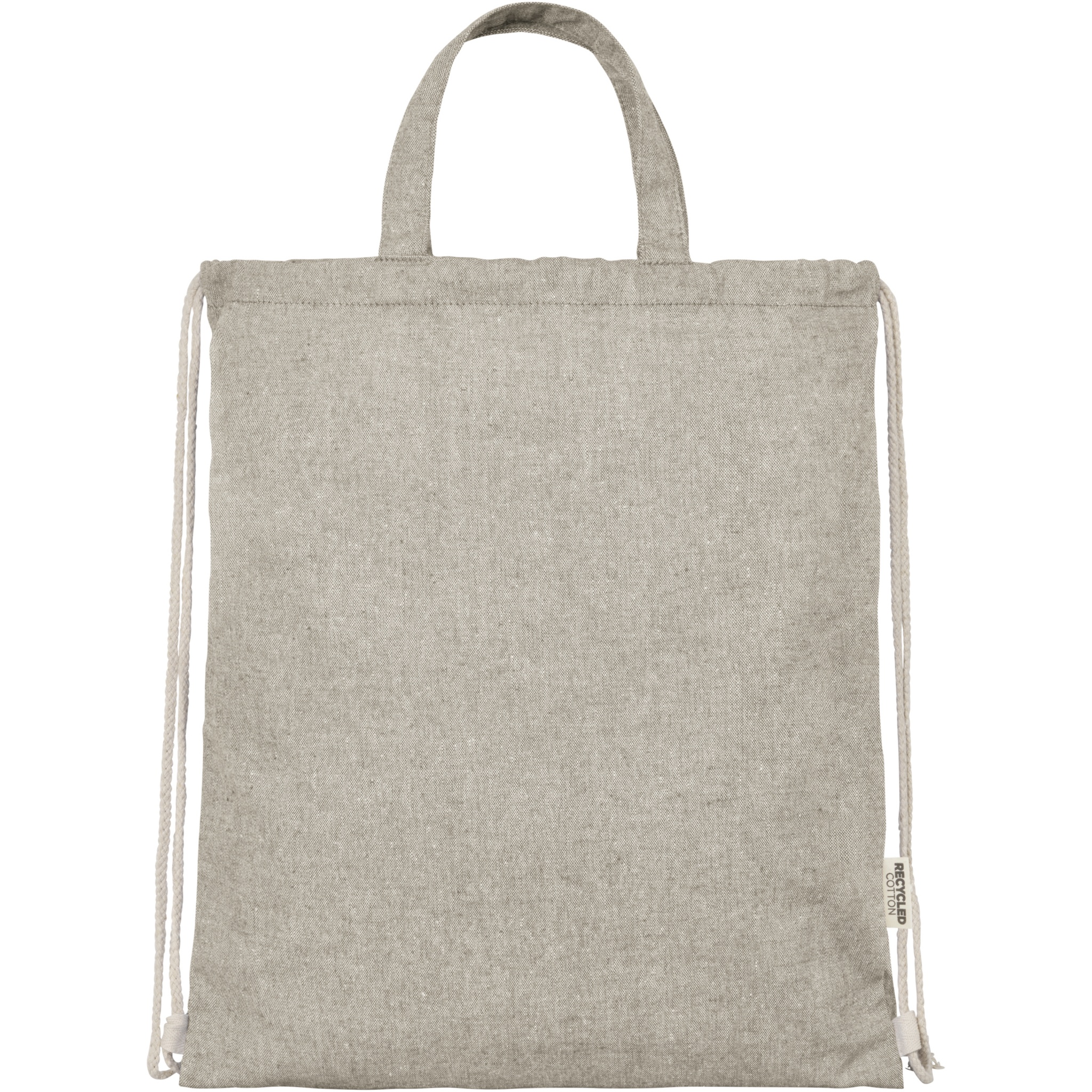 Pingutusnööriga kott on valmistatud 150 g/m² taaskasutatud puuvillasest polüestri segust. Suur põhisahtel naturaalset värvi puuvillase nööriga. Taaskasutatud puuvilla toodetakse tarbimiseelsetest jäätmetest, mis tekivad tekstiilitehastes lõikamisprotsessi käigus. Sarnased värvid segatakse kokku, nii et täiendavat värvimist pole vaja. Taaskasutatud puuvilla olemuse tõttu võib esineda väga väikest värvimuutust. See lisab selgelt autentsema välimuse. Iga seljakotiga on kaasas ka Aware™ jälgija. See uuenduslik funktsioon võimaldab kasutajatel QR-koodi abil jälgida oma kauba päritolu ja teekonda, suurendades tarneahela läbipaistvust ning soodustades tugevamat seost toote ja selle tootmisprotsessi vahel. Vastupidavus kuni 5 kg kaalule. Käepideme pikkus: 14 cm.