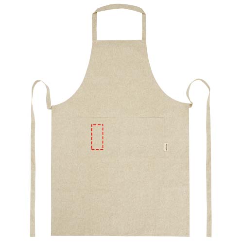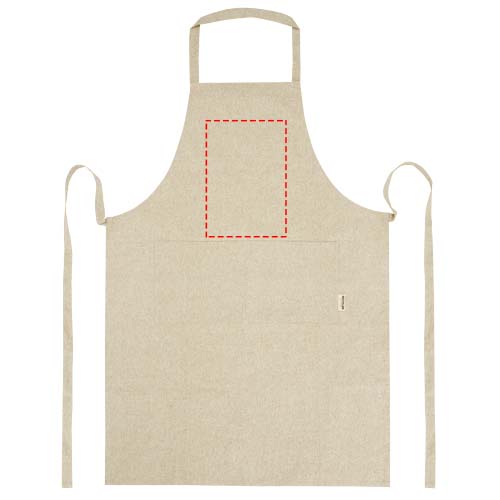Põll 200 g/m² taaskasutatud puuvillasest polüestri segust. Sellel on 2 kõrvuti asetsevat taskut, mille kombineeritud suurus on 45 x 20 cm, ja 1-meetrine lipsukinnis. Taaskasutatud puuvilla toodetakse tarbimiseelsetest jäätmetest, mis tekivad tekstiilitehastes lõikamisprotsessi käigus. Taaskasutatud puuvilla olemuse tõttu võib esineda väga väikest värvimuutust. See funktsioon lisab selgelt autentsema välimuse. Kaelarihma pikkus: 55 cm.