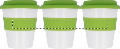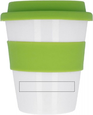 Üheseinaline trummel läikivast valgest PP-st silikoonkaane ja keskmise rõngaga. Mahutavus 350 ml. Kuna see on ühe seinaga kruus, võib soojusülekanne siiski toimuda.