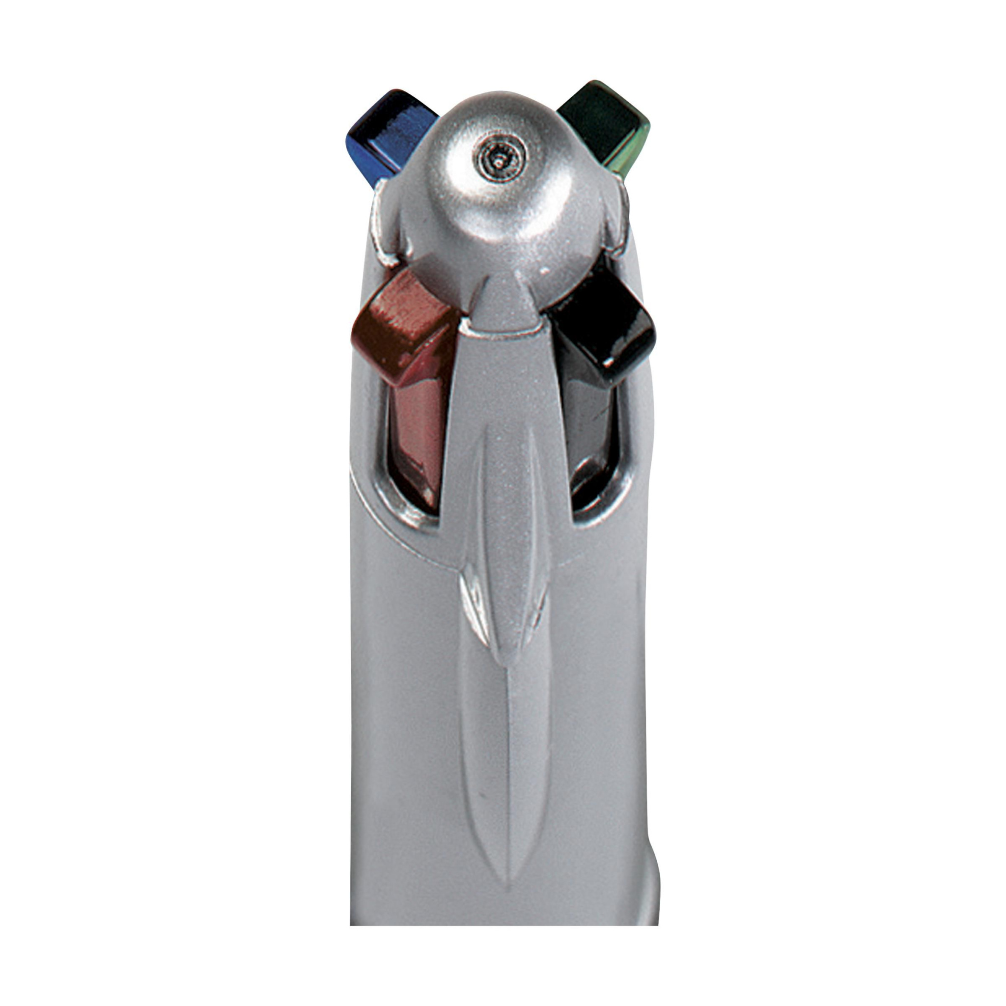 4-värviline libisemiskindla kummist käepidemega pastapliiats. Varustatud sinise, rohelise, punase ja musta tindiga.