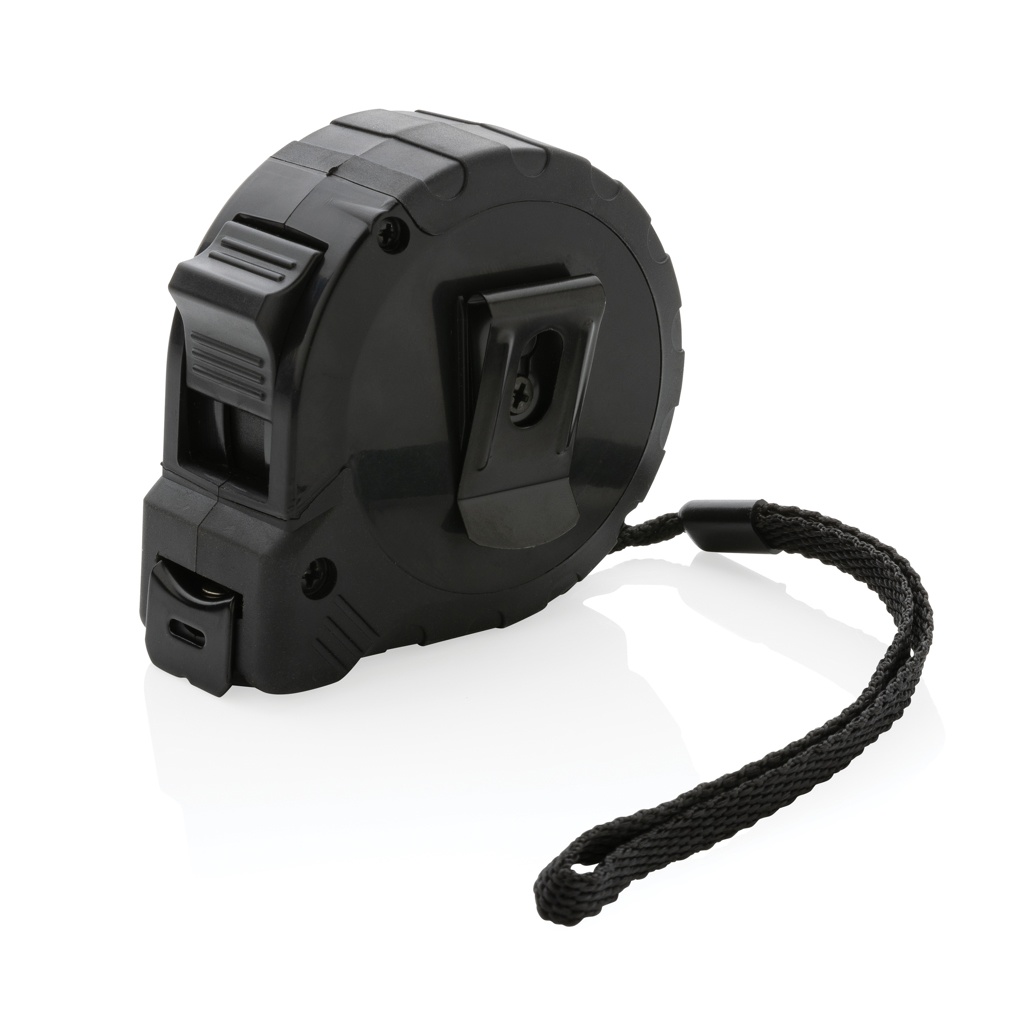 5-meetrine lint, mis on valmistatud RCS (Recycled Claim Standard) sertifitseeritud taaskasutatud ABS-ist. Taaskasutatud kogusisaldus: 15% eseme kogukaalust. RCS-sertifikaat tagab taaskasutatud materjalide täielikult sertifitseeritud tarneahela. Luksusliku TRP kummist käepidemega sujuvaks hoidmiseks. Vabastus-/lukustusnupu ja küljel oleva lisahoidmisnupuga. 19 mm ühepoolse teibiga, kollane musta süsinikterasest konksuga. Polüester randmepaelaga. Pakitud FSC® mix kraft pakendisse