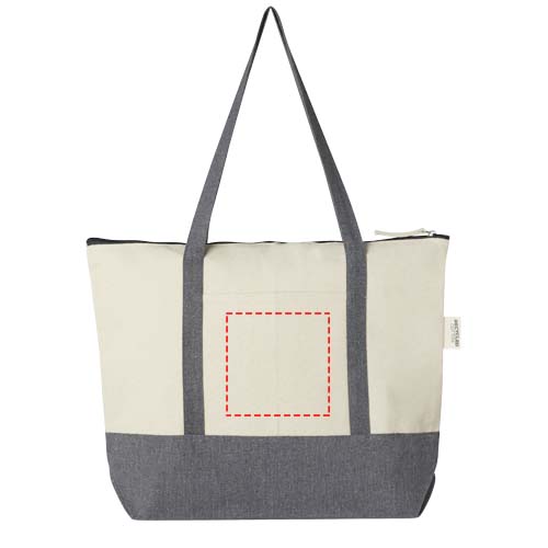 Repose 320 g/m² taaskasutatud puuvillast lukuga kott on valmistatud keskkonnasõbralikust, tarbimiseelselt taaskasutatud puuvillast. Sellel on lukuga põhisahtel, trendikas värviblokeering, kaldkriipsuga eesmine tasku ja 27 cm käepidemed. Vastupidavus kuni 10 kg kaalule.