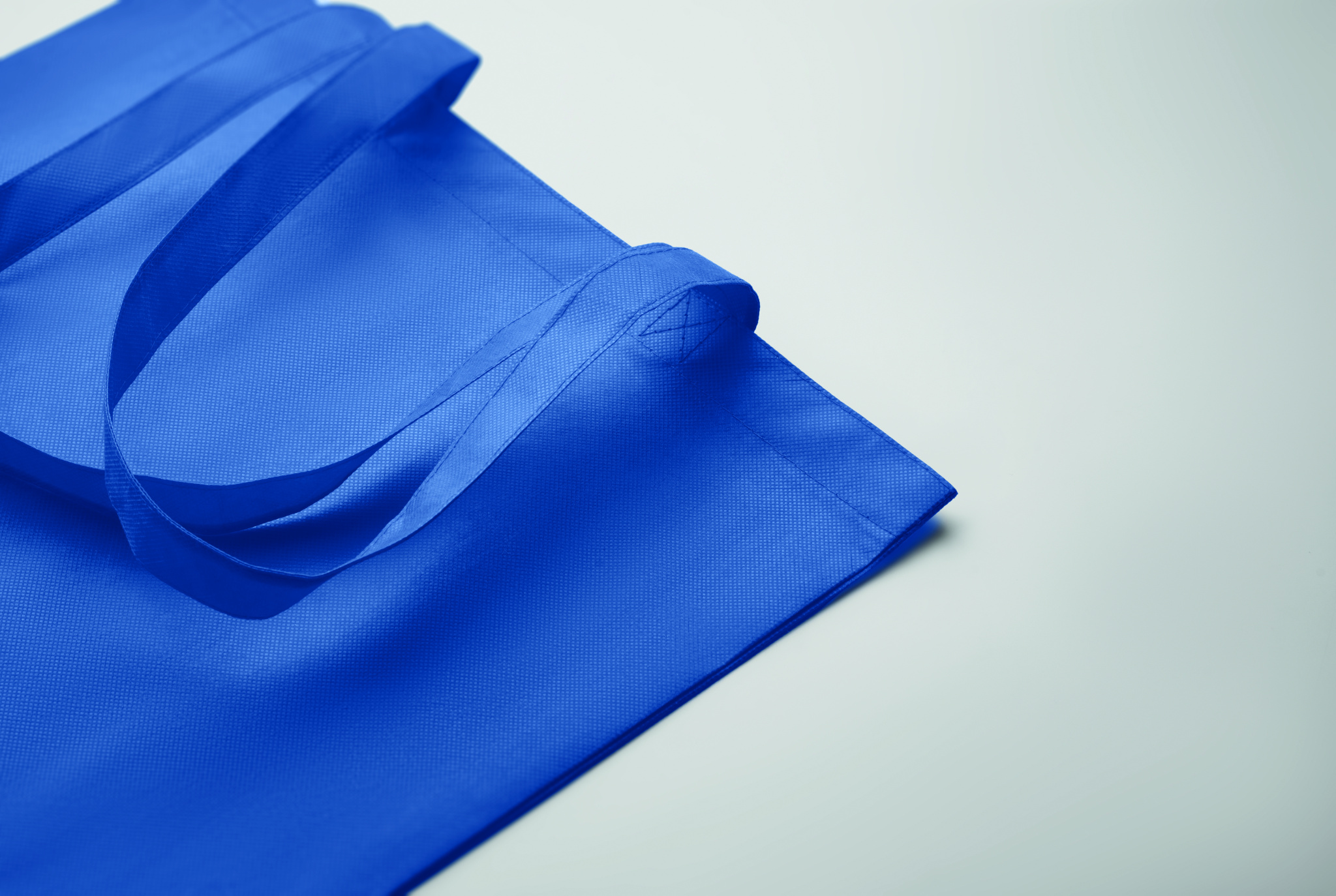 Pikkade sangadega RPET lausriidest ostu- või rannakott. 80 gr/m².