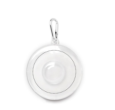 Silikoonist kokkupandav tass pillide konteineri ja karabiiniga.