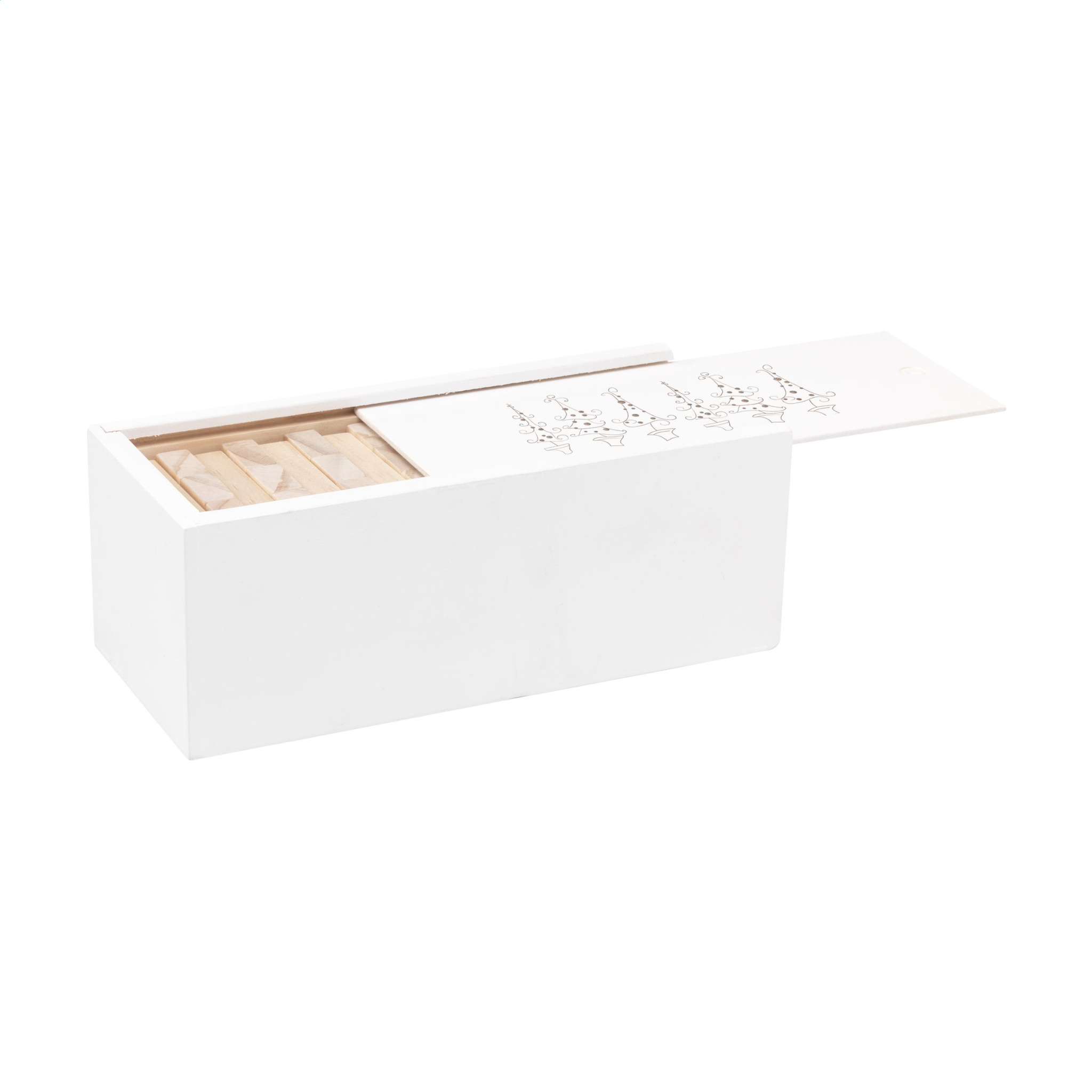Tavalise jõulukujundusega puidust virnastamismäng (48 klotsi). Torni mõõdud 16,5 x 6 x 6 cm. Kaasas valge puidust kast, millel on libistatav ava, mis hõlbustab ladustamist. Sealhulgas juhiseid. - See toode on trükitud tavalise jõulukujundusega. Valikus on 6 erinevat kujundust, nagu piltidel näha. Disaini pole võimalik kohandada. Iga toode tarnitakse eraldi pruunis pappkarbis.