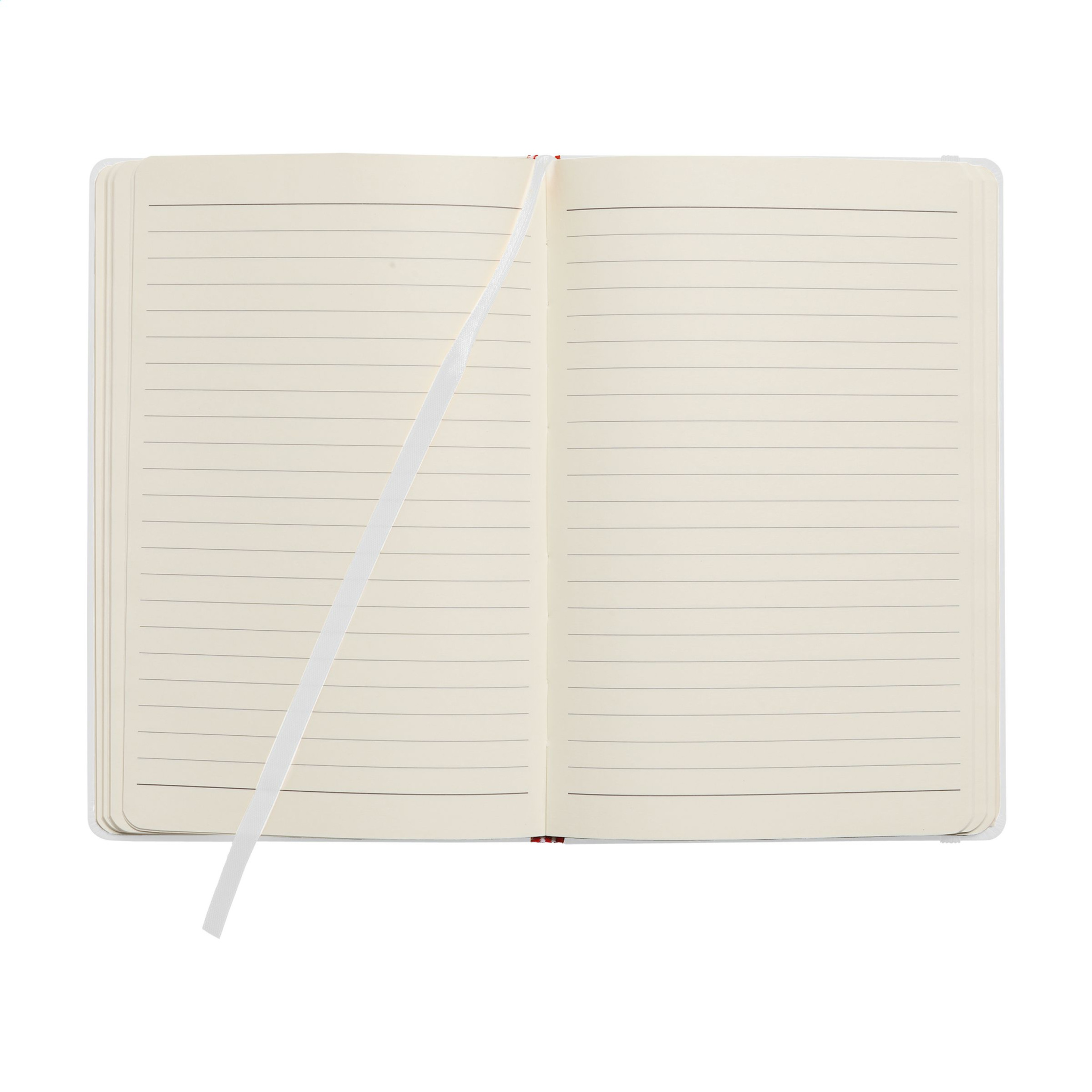 A5 formaadis märkmik ca. 96 lehte/192 lehekülge kreemjavärvilist joonelist paberit (80 g/m²). Ideaalse köite, kõva kaane, tasku, elastse kinnituse ja siidipaelaga.