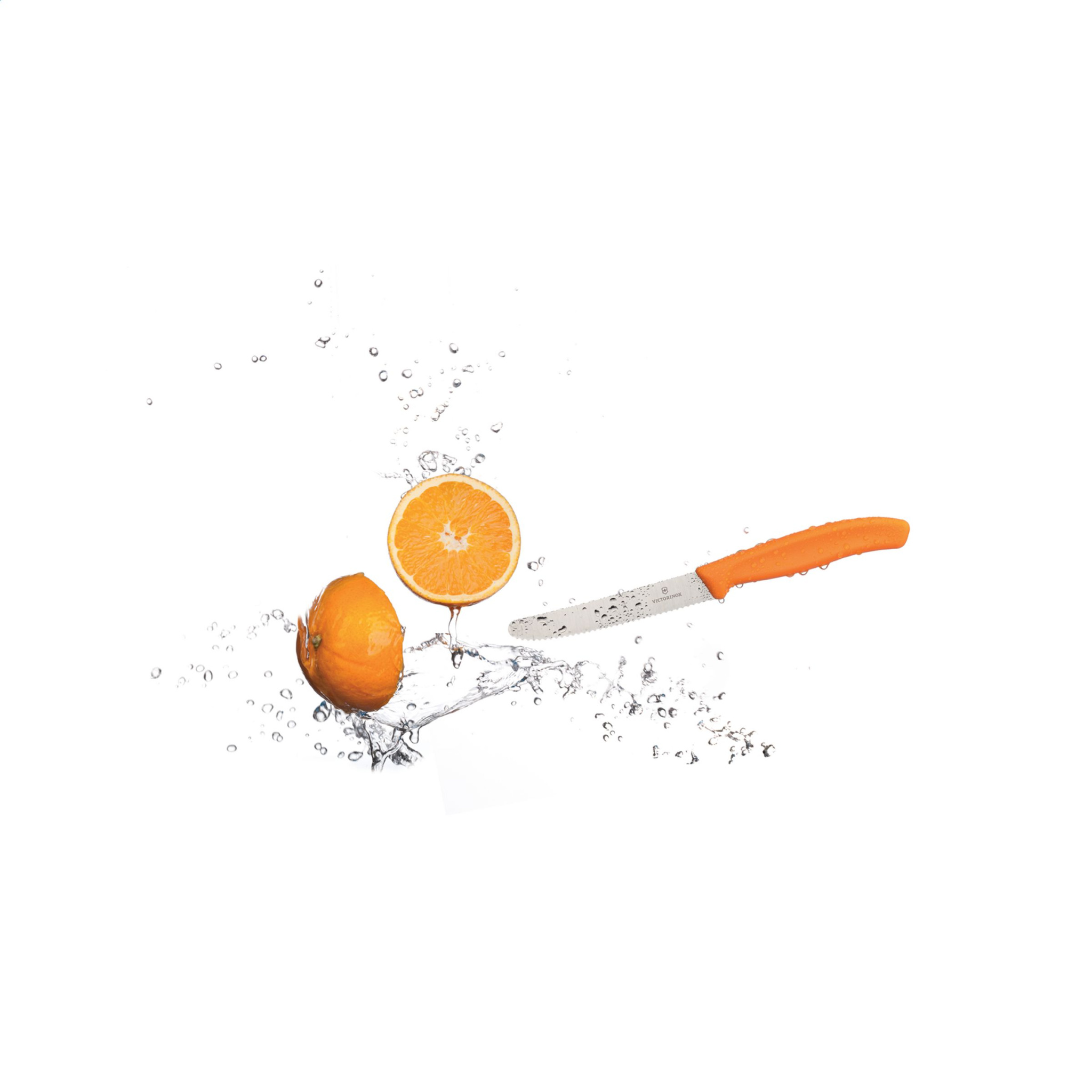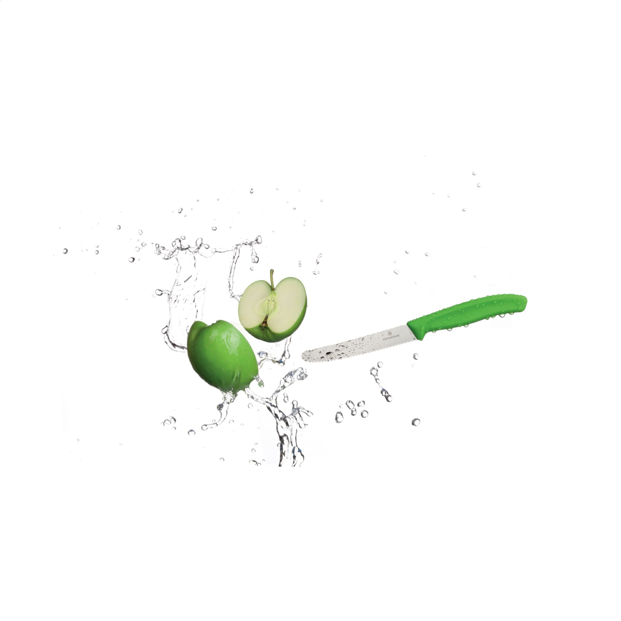 Victorinox Swiss Classicu valmistatud tippkvaliteetne lauanuga. Kvaliteetne roostevabast terasest tera (11 cm) on sakiline ja ümara servaga. Plastikust käepidemega. Seda nuga on tänu ergonoomilisele disainile väga mugav käsitseda. Saab kasutada söömiseks või mitmeks tööks köögis. Nõudepesumasinas pestav. Eksklusiivne Victorinoxi kaitseümbris. See on saadaval eraldi (toote nr 0692).