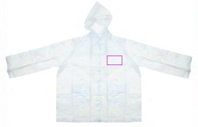 PVC vihmajope (üks suurus XL) läbipaistev matt kapuutsiga, kahe esitasku ja nööpidega. Trükime teie logo rinnale (südame poolele).