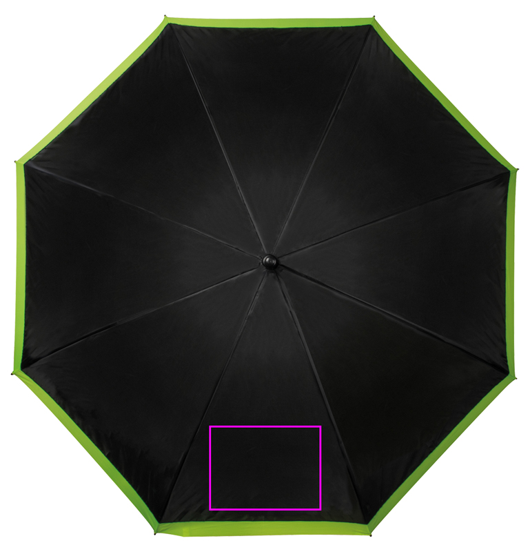 Suur vihmavari, mis tõmbab tähelepanu endale ja teie logole tänu oma musta-neooni ja kollase värvi kontrastile (190T polüester.) Trükime teie logo segmendile.