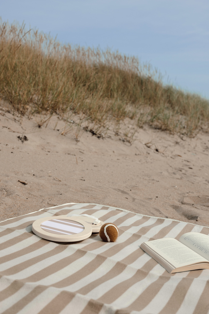 See on ideaalne välimäng randa või parki. Mäng sisaldab ühte palli ja kahte takjapüüdjat, mis on valmistatud FSC® sertifitseeritud vineerist. Kahevärvilise triibulise mustriga mängukomplekt pruuni palliga. Mäng on pakitud purjeriidest kotti, mille tagumine osa on võrkkangast, mida on mugav kaasas kanda. Kasutusjuhend kaasas.