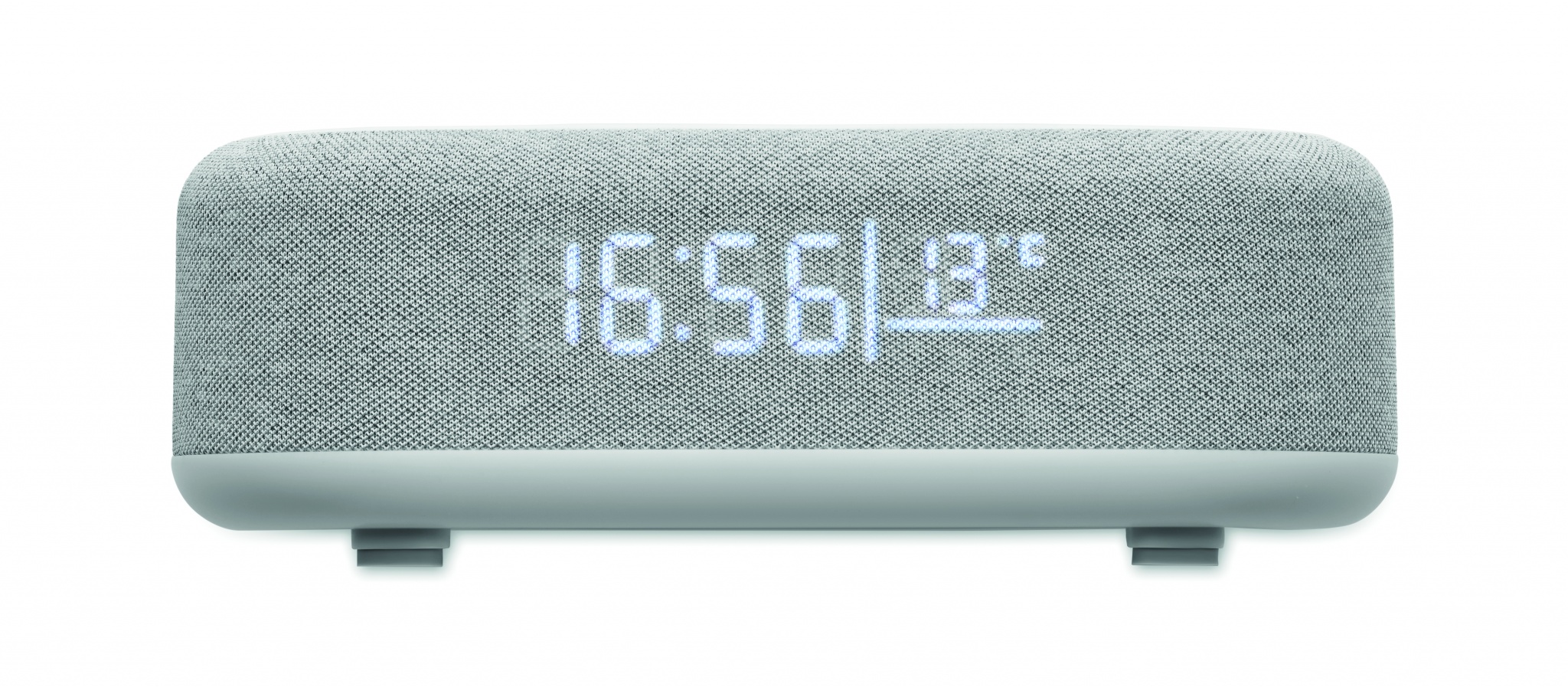 4-in-1 langaton 15W lataus 5W kaiutin ABS:ssä sääasemalla ja ympäristön valolla. Herätyskello. Kellonajan ja lämpötilan näyttö. Sisäänrakennettu Li-Iin akku: 1200 mAh.