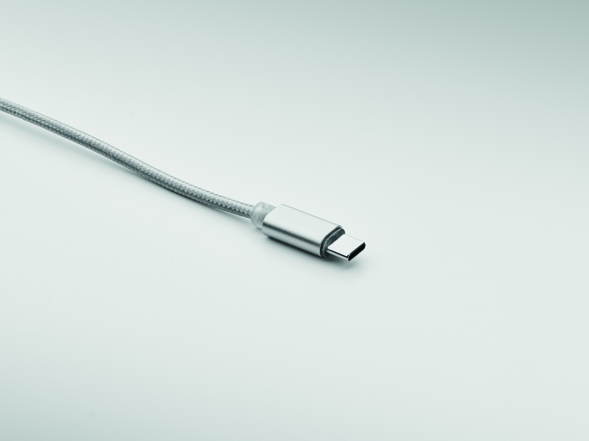 Latauskaapeli alumiinia, jossa tulo: 2-in-1 type-C & type-A ja micro-B (2 in 1 pin), C-tyypin ja micro B:n lähtö. Kaapelin pituus: 120 cm.